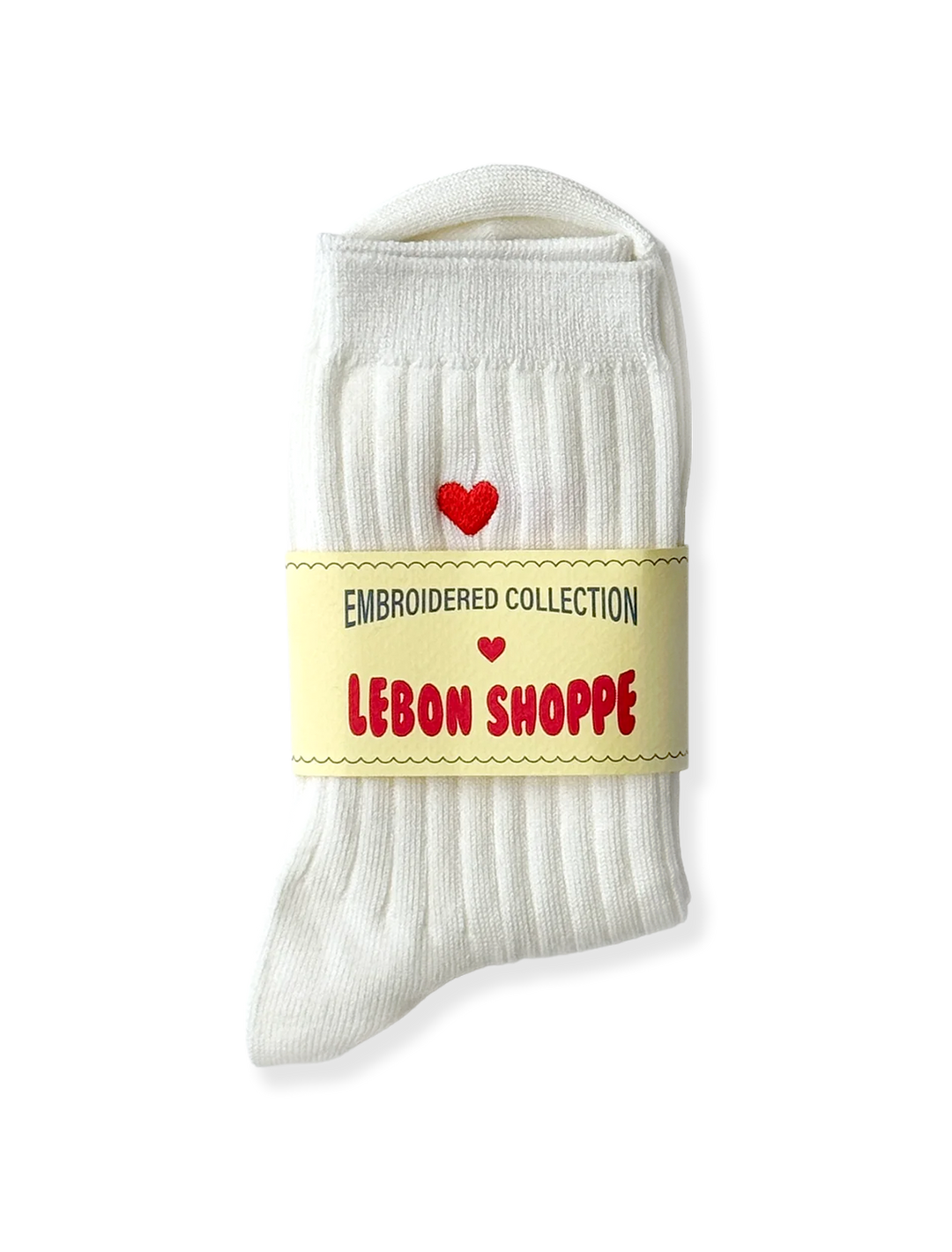 her socks in white with embroidered heart