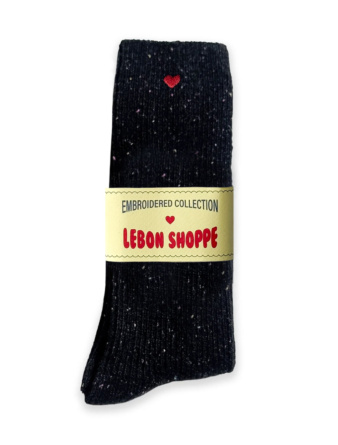 snow socks in black with embroidered heart
