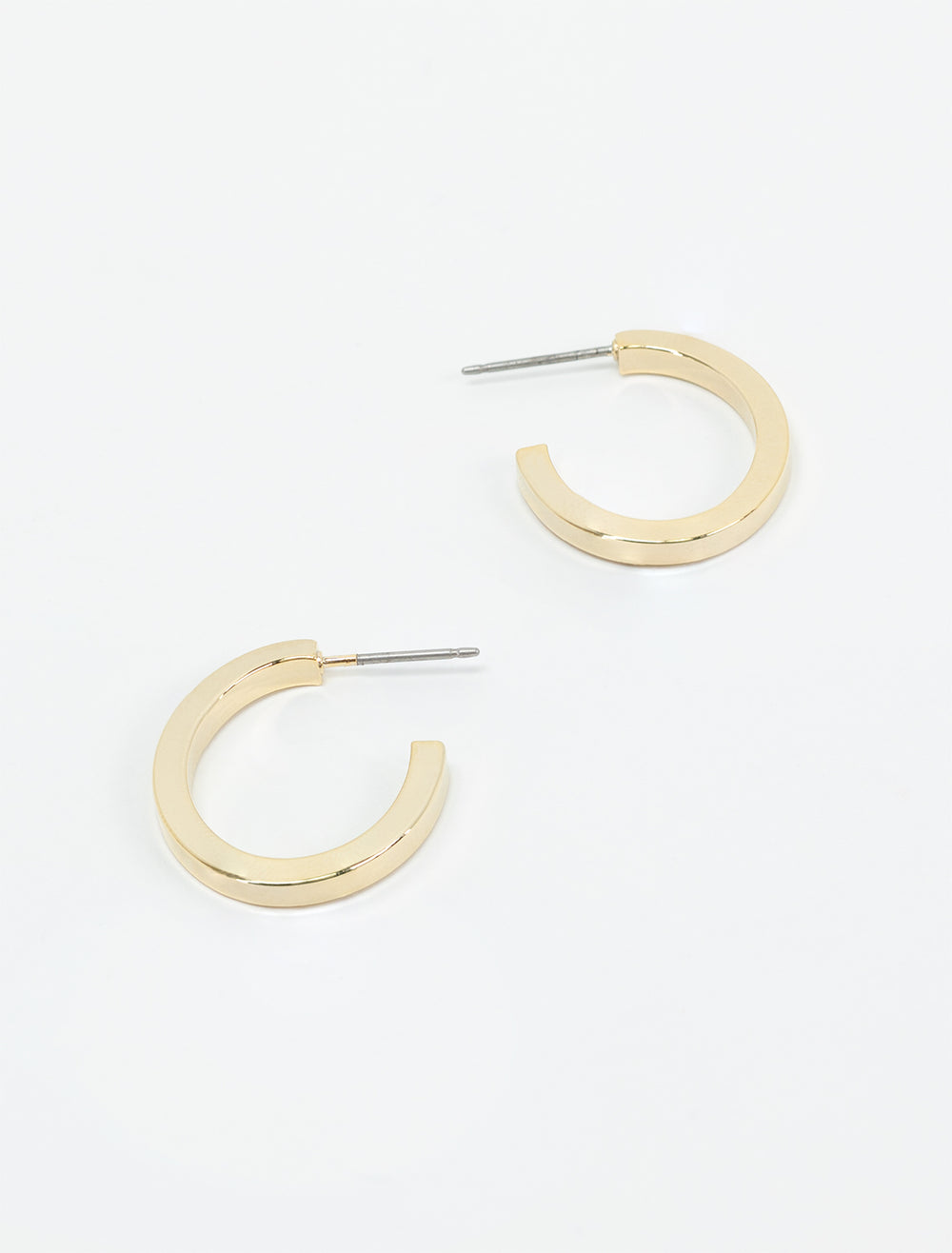 Cutest mini version of AV Max's uber popular Sienna Flat Oval Hoop. This one is 7/8" long x 3/4" wide and with the same square wire material. 14k gold plate over brass. Hand made in the USA.