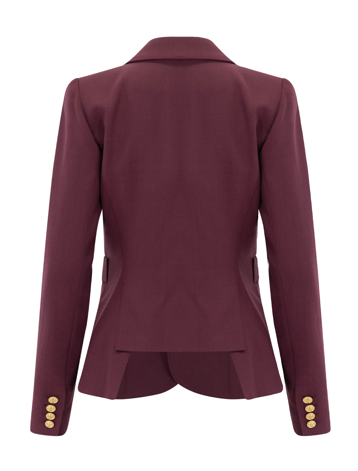 Decidedly tailored and one of Smythe's top selling silhouettes, this single-breasted blazer features a “cheeky” cut out back vent and brass hardware. Curvy figures may wish to go up a size. This blazer is quintessentially Smythe: refined and perfectly tailored. This timeless classic has been a Smythe staple since 2011.