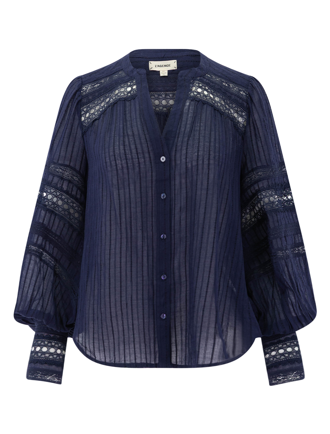 Defined by an airy fit, sultry bohemian undertones, and geometric trim, the Kiera is a blouse for your inner romantic. This L’AGENCE bestseller is now back in navy blue.