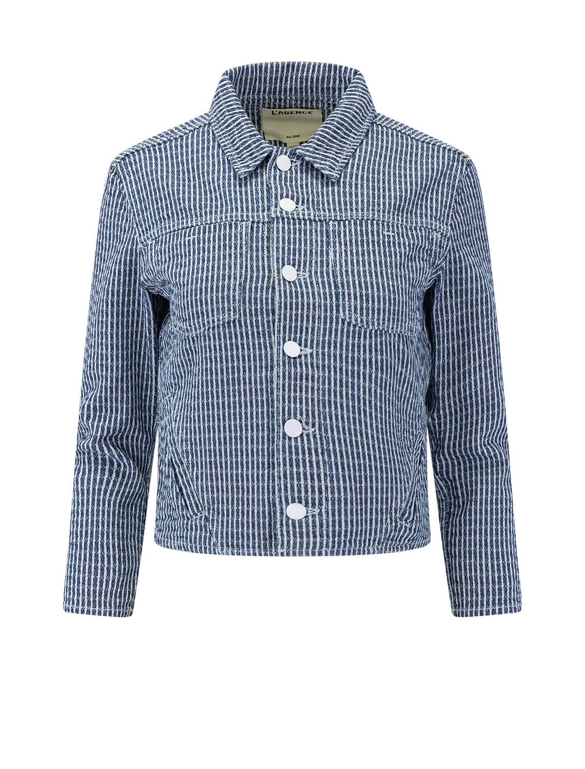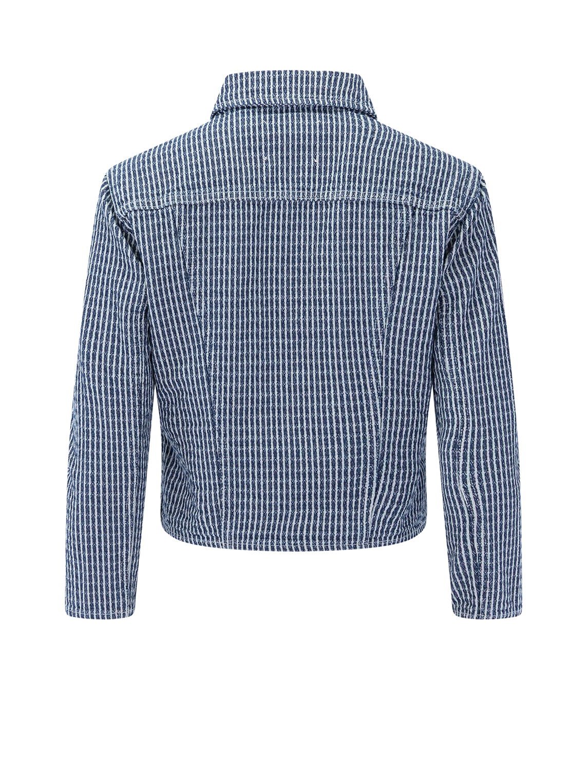 The Nelly brings a fresh twist to the classic jean jacket with its textured, vertical-stripe denim and clean white buttons. Cropped and cool, it offers just the right amount of structure while keeping things effortless. Wear with a skirt or pair it back with your favorite jeans for an easy everyday look.