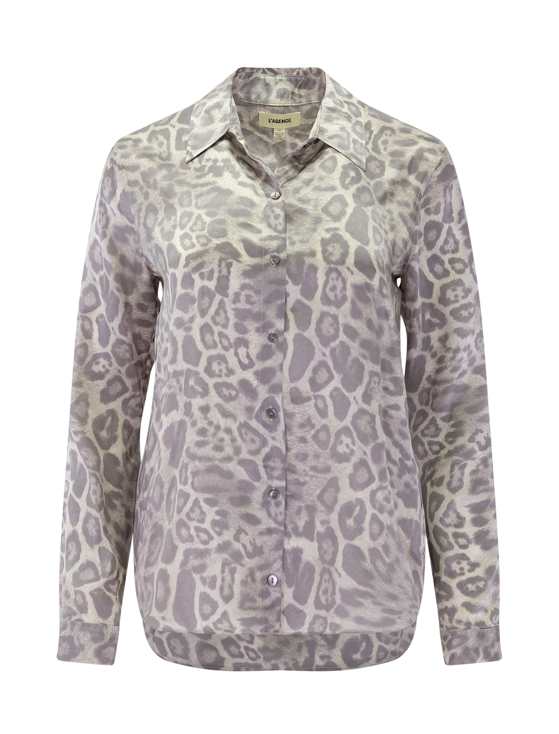 Meet the iconic long-sleeve silk button-down that belongs in every wardrobe. This L'AGENCE bestseller is now back in a gray leopard print.