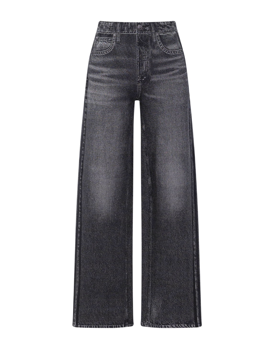 Miramar, Rag & Bone's revolutionary printing technique, makes any material look like denim. These wide-leg track pants are cut and sewn from cotton terry cloth that's ultra-soft on the inside and printed on the outside to look like your favorite jeans. Featuring a pull-on elastic waistband and hidden side-seam pockets, the mid-rise style further achieves its comfortable fit and feel with its sporty side stripes, other pockets, and denim details digitally printed on the fabric.