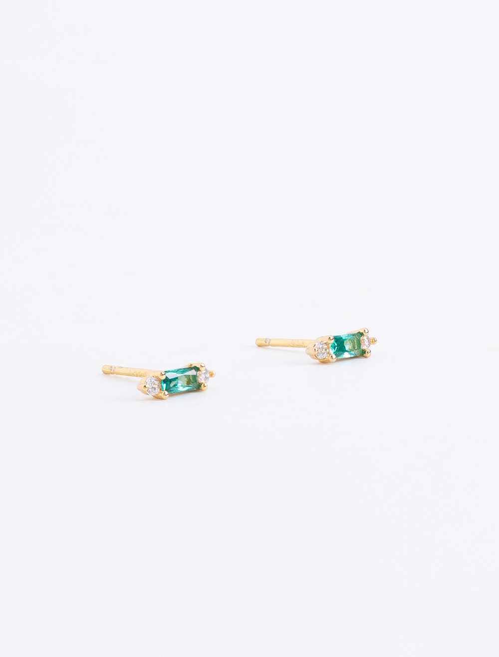 tiny stick emerald baguette with cz studs