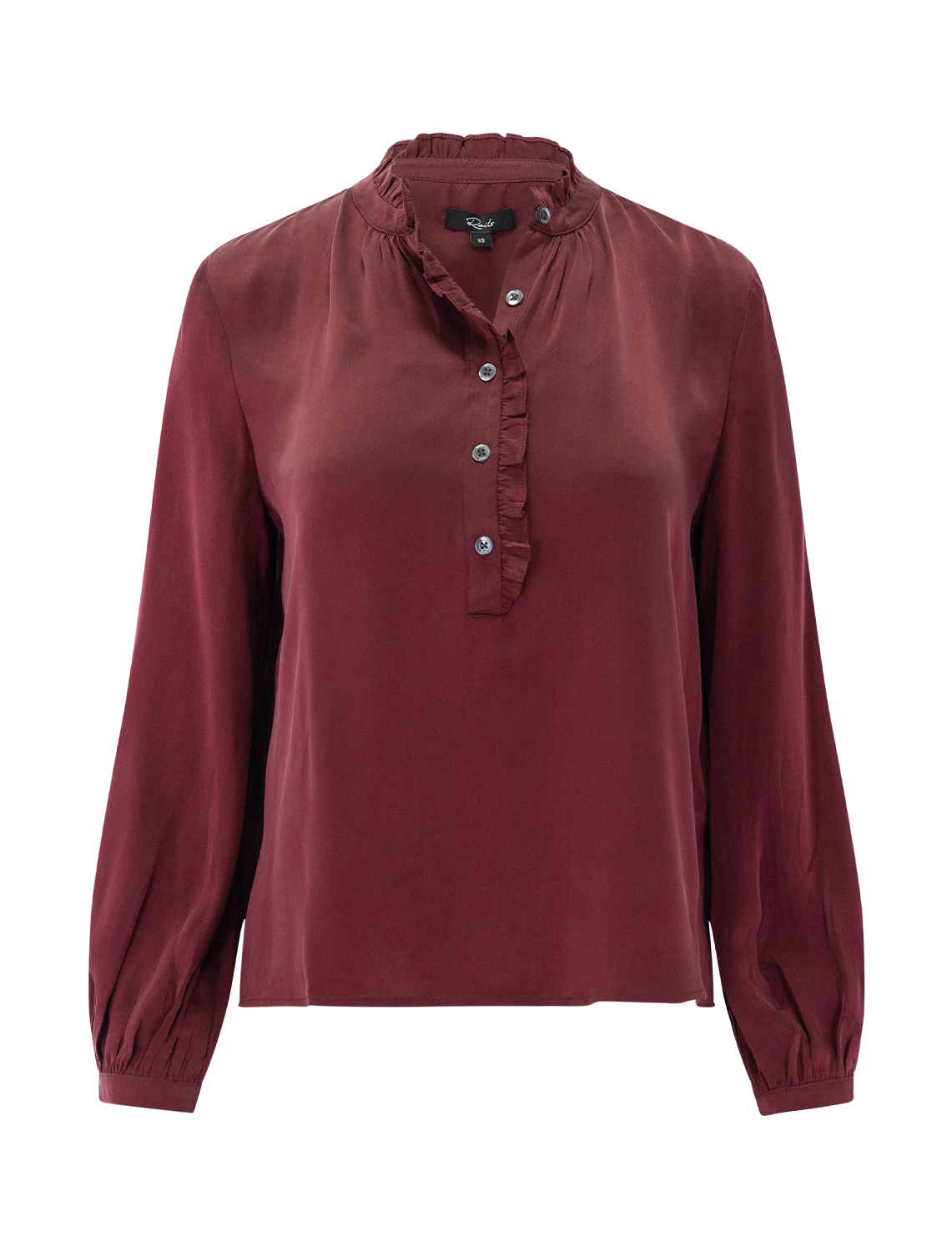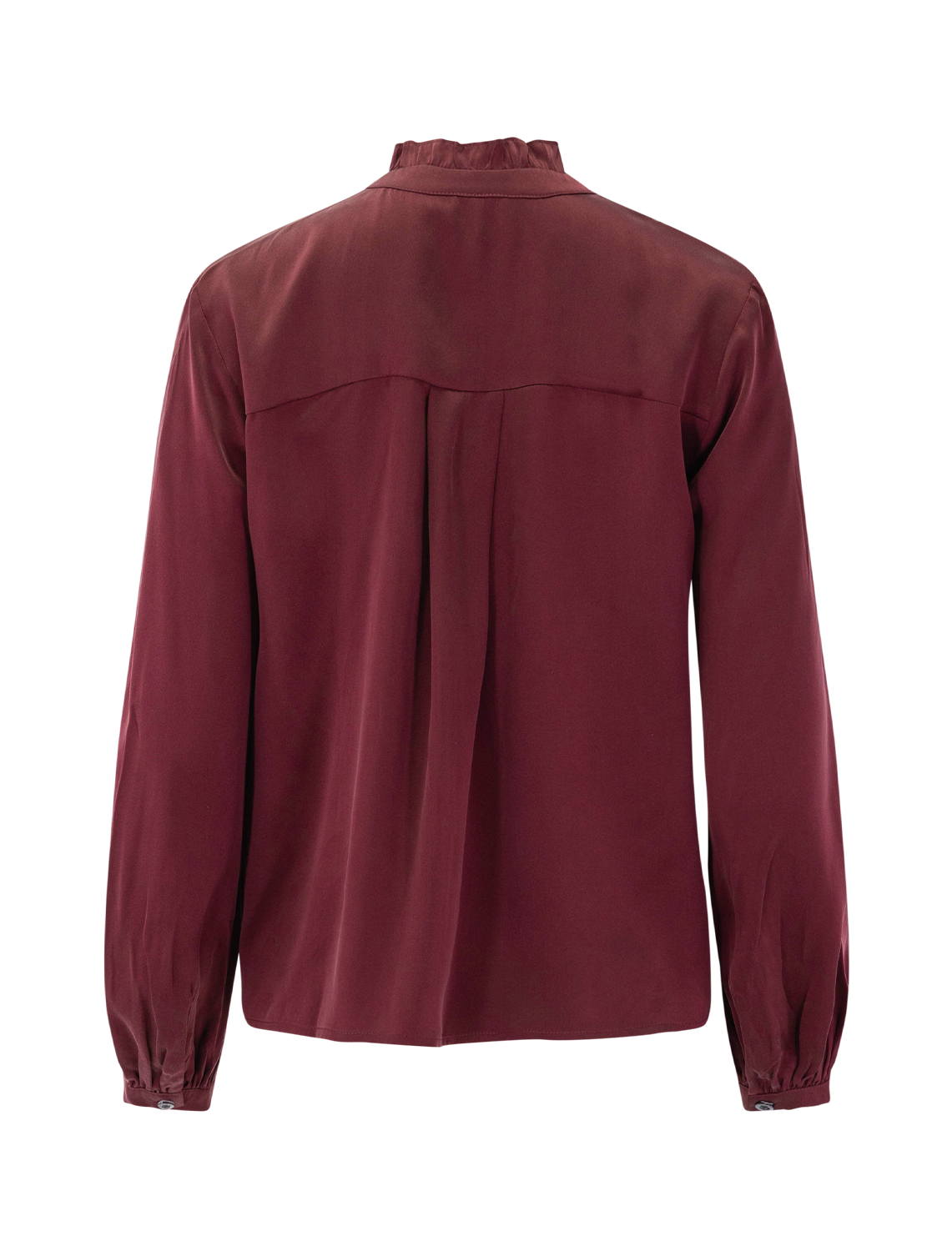 The Sien transforms every moment with a flowing silhouette in luxurious silk charmeuse. It features a ruffled high neckline, classic button placket, and billowing sleeves gathered at fitted cuffs for a polished finish.