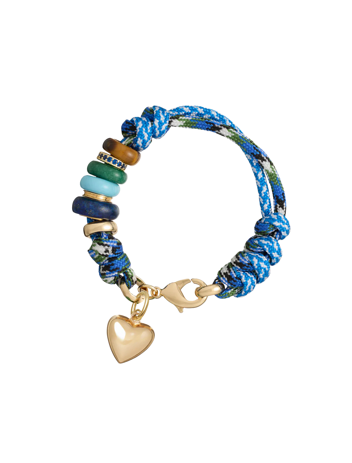 - cord bracelet with gold tone, pave, and enamel ring slider charms