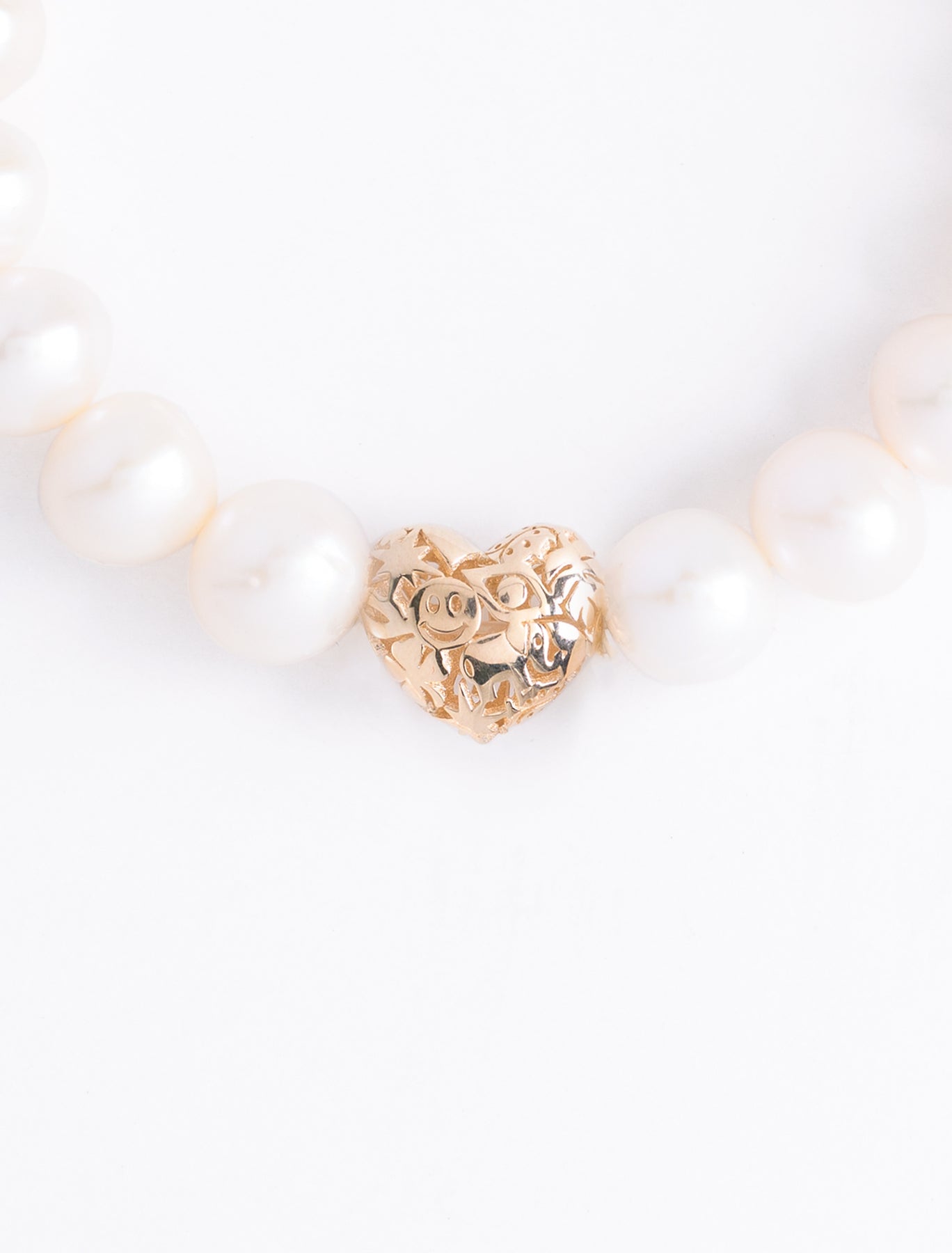 Sydney Evan's 10mm puffy icon wallpaper heart bead on pearl beaded bracelet.