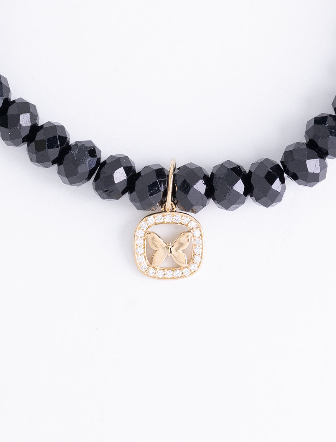 diamond and gold butterfly open icon charm beaded bracelet