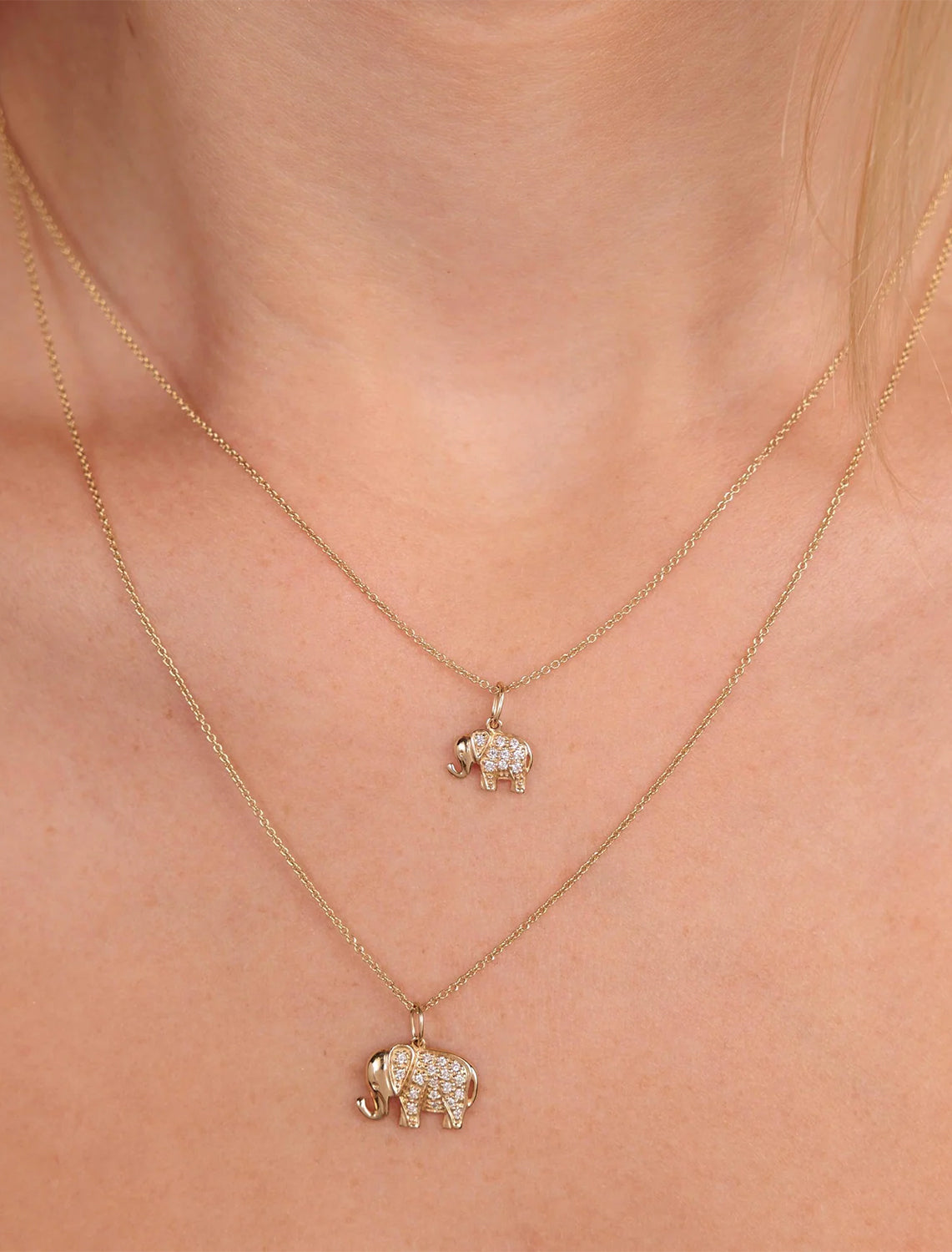 Carry wisdom, strength, and good fortune close to your heart with Sydney Evan's 14k Yellow Gold Small Elephant Charm Necklace. This charming pendant features a delicate elephant adorned with sparkling pavé-set diamonds, measuring approximately ½" x ⅓" — a perfect balance of subtle elegance and meaningful symbolism.