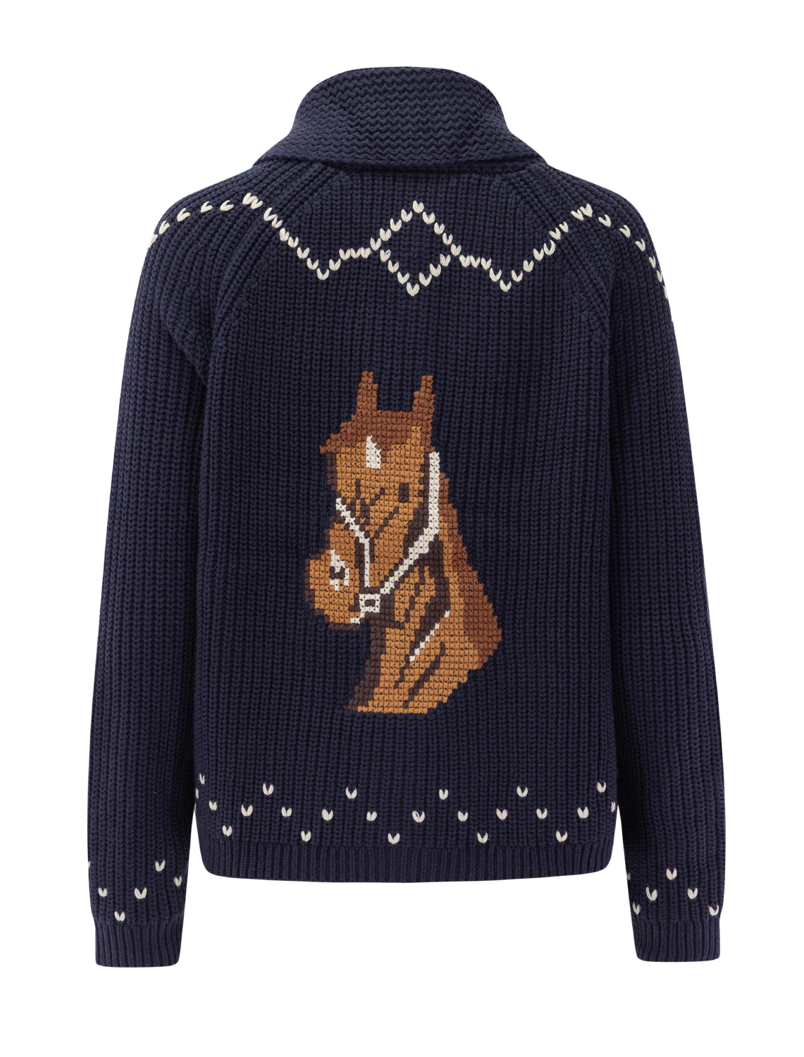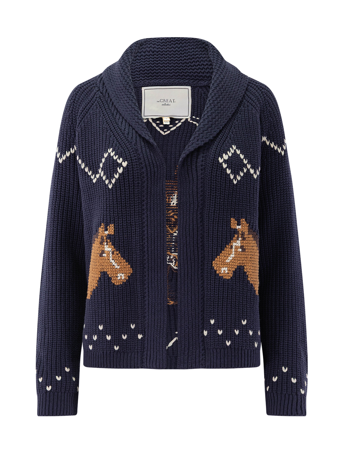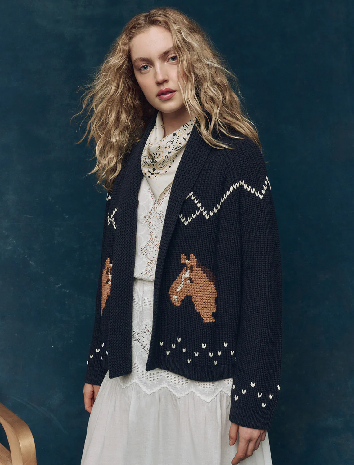 Inspired by a beloved 1960s children’s sweater, The Horse Lodge Cardigan brings a sense of western nostalgia to our best-selling Lodge silhouette. Hand-embroidered horses add a charming, heritage touch, while a soft cotton-blend yarn keeps the feel easy and wearable. Designed with intentional ease through the body, it layers effortlessly for everyday comfort. Size down for a closer fit, or wear true for that relaxed, borrowed-from-the-past feel.