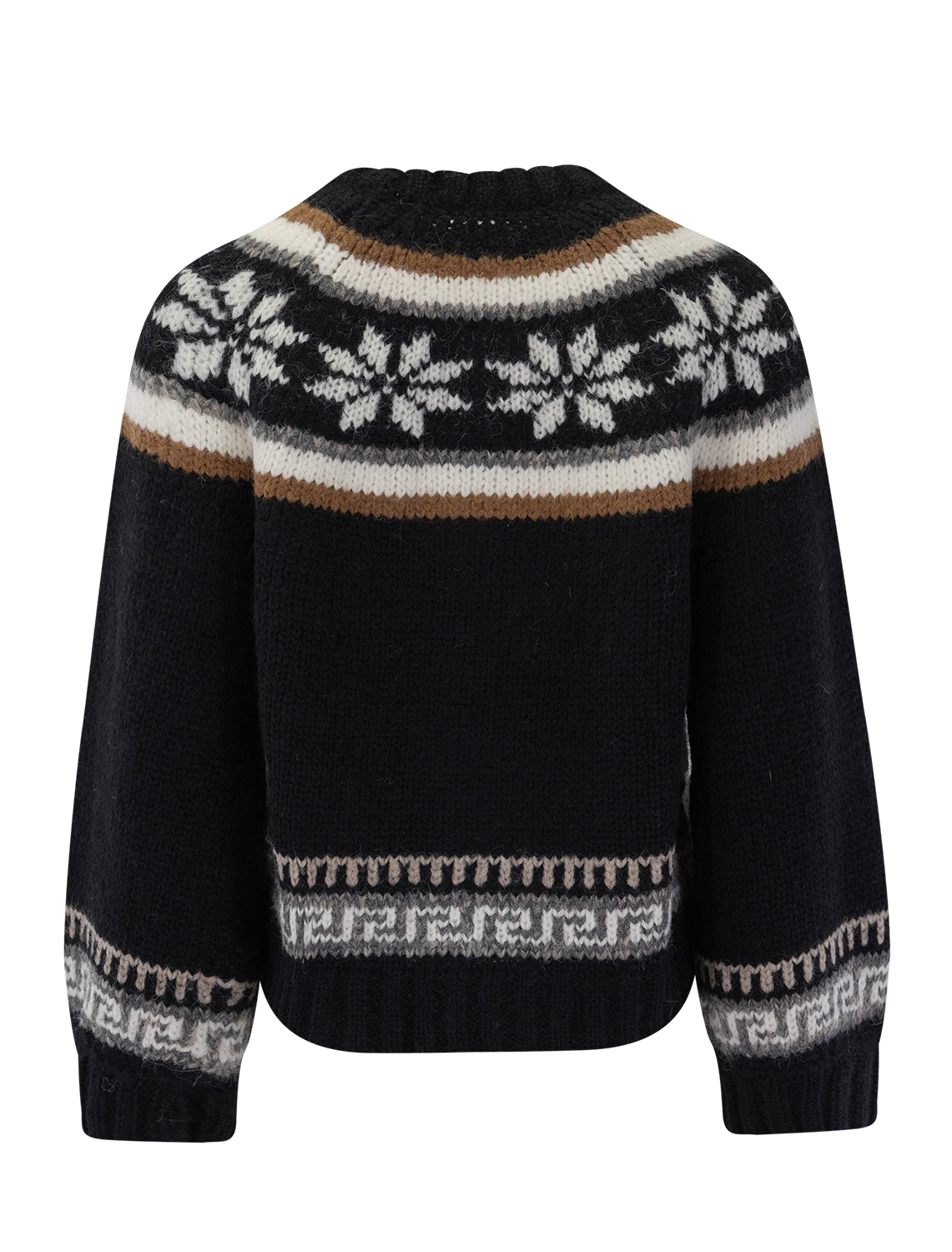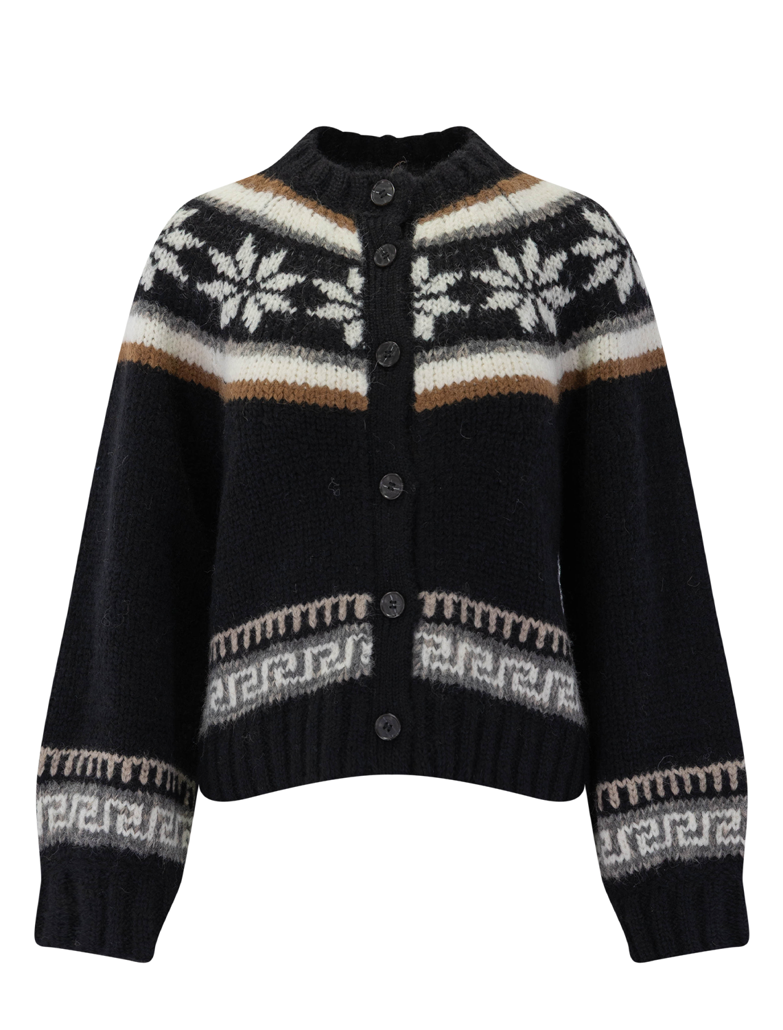 Knit from lofty alpaca yarn, this relaxed cardigan showcases a Nordic snowflake pattern inspired by heritage hand-knits. Finished with horn buttons, blouson sleeves, and rib trims, it’s an instant heirloom.