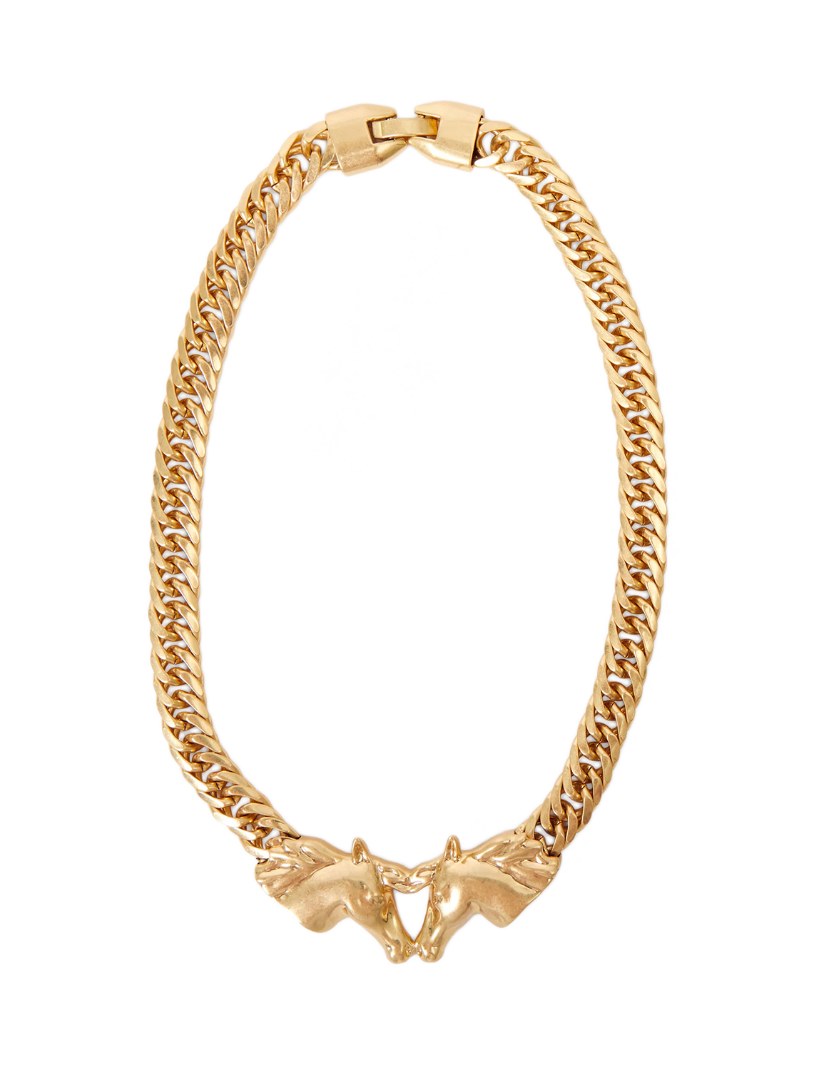 Have you ever seen a necklace like this? Neigh. Vintage gold-plated brass.