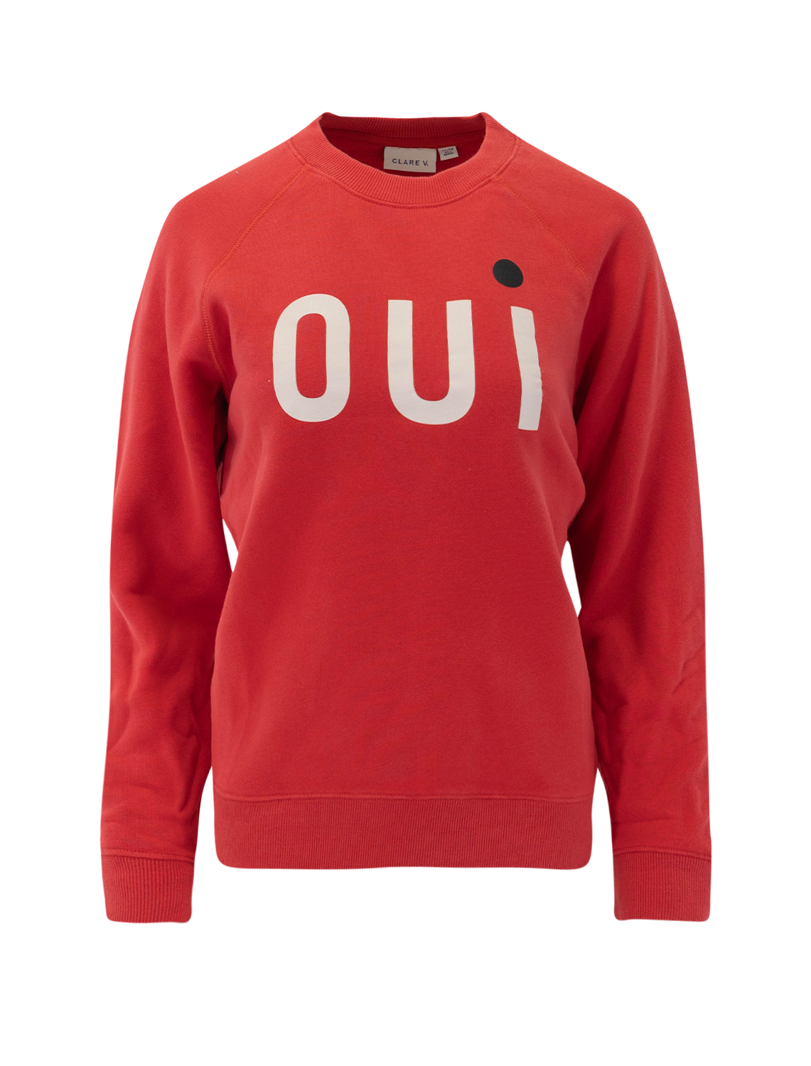 This crewneck is made in collaboration with (RED). Clare V. shares their belief that preventable and treatable disease should be preventable and treatable for everyone, everywhere. 15% of your purchase will support (RED)’s efforts in bringing life-saving health programs to communities most in need.