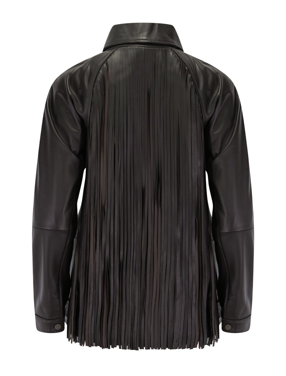 Rendered in supple lambskin leather, the "Drake" jacket from Kobi Halperin features a paneled construction with smooth, clean lines, contrasted with a fluttering fringed back.