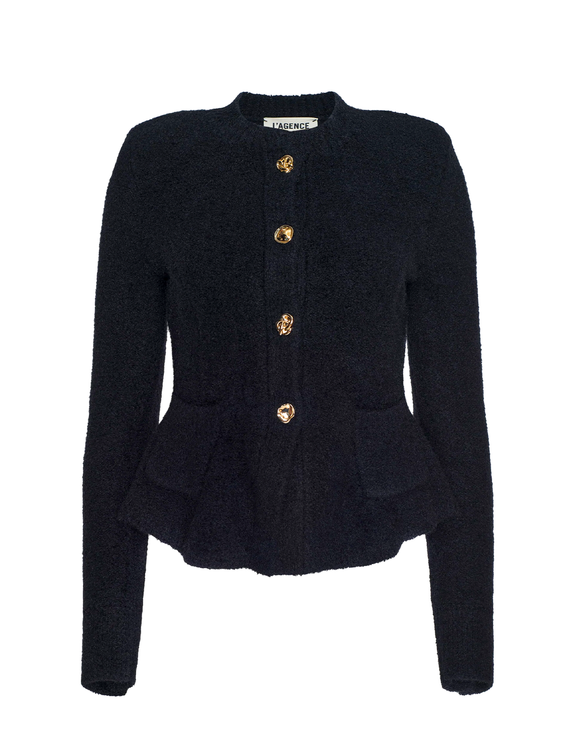 The Melissa cardigan blends soft structure with quiet elegance. Spun in a textured knit, it’s shaped with a sculpted waist and flared hem that flatters the figure. A clean neckline and graceful silhouette channels elegance with a hint of old-world charm while novel accent buttons keep it thoroughly modern. Wear with its coordinating skirt and heels for a polished head-to-toe look.
