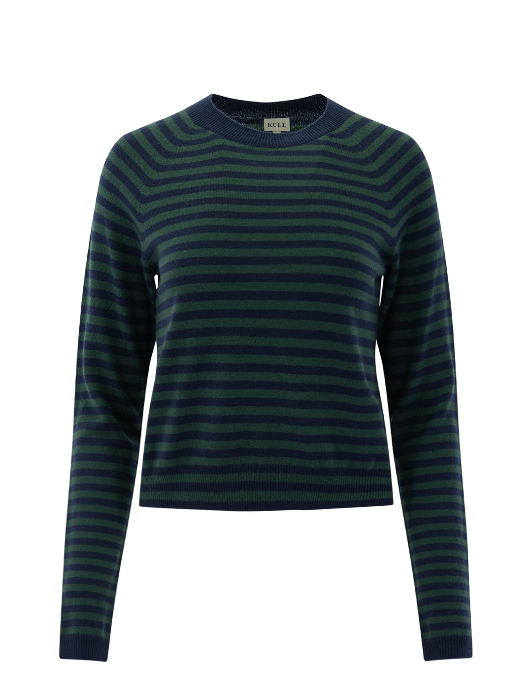 the sydney cashmere sweater in navy and green stripe