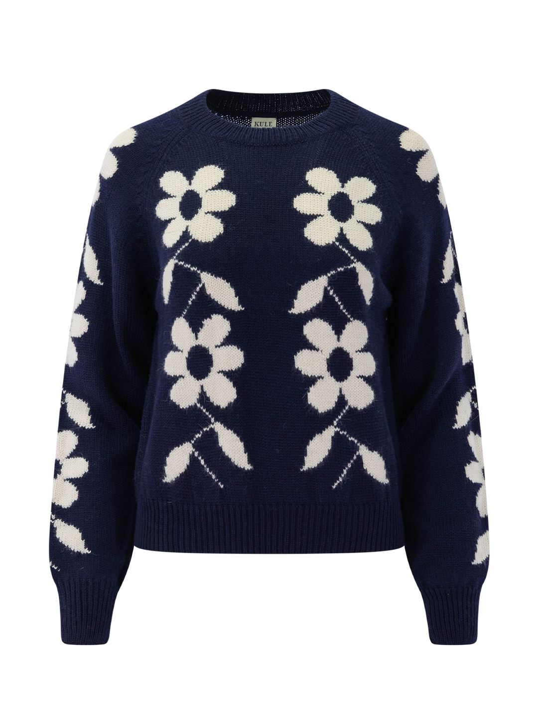 alma crewneck sweater in navy and red