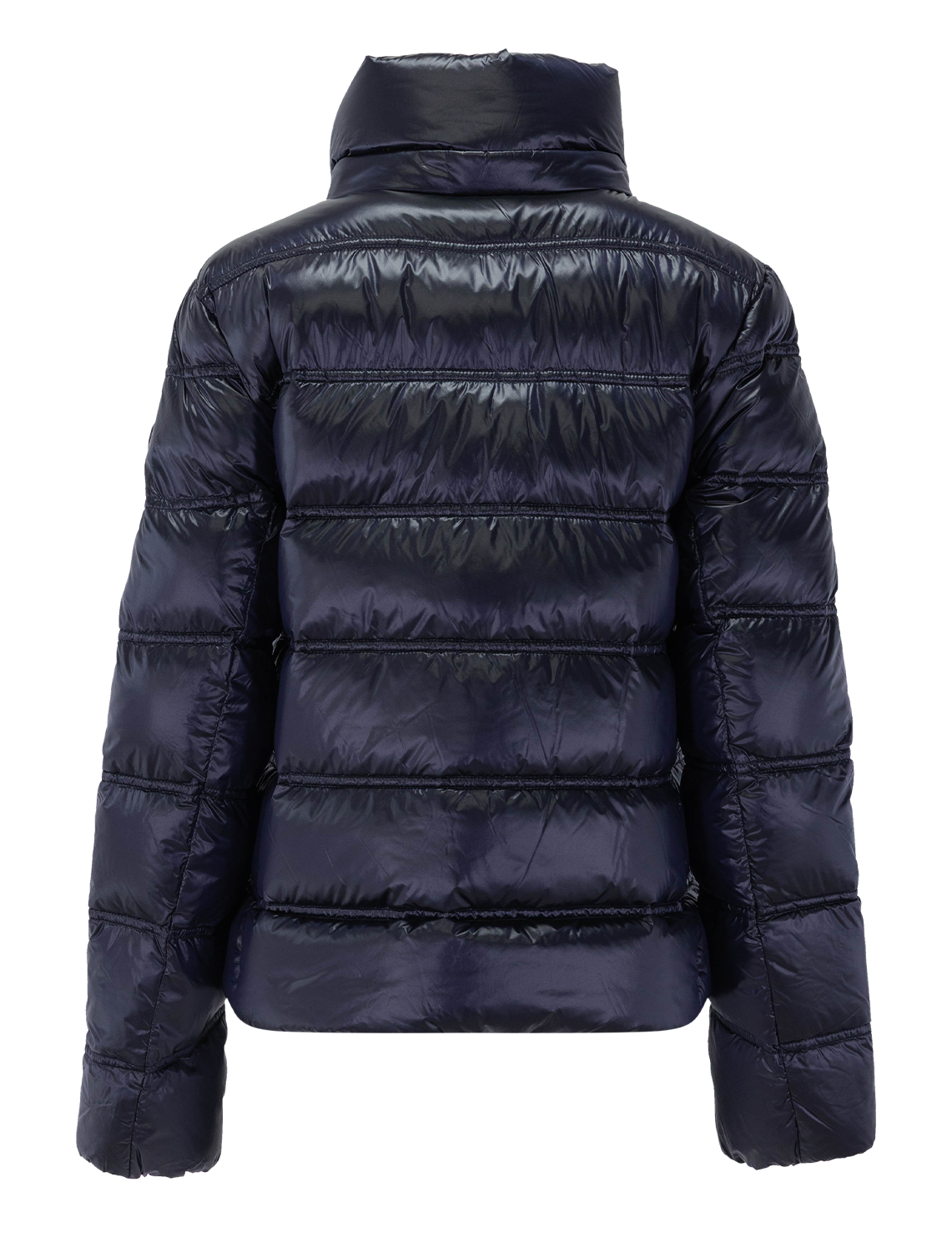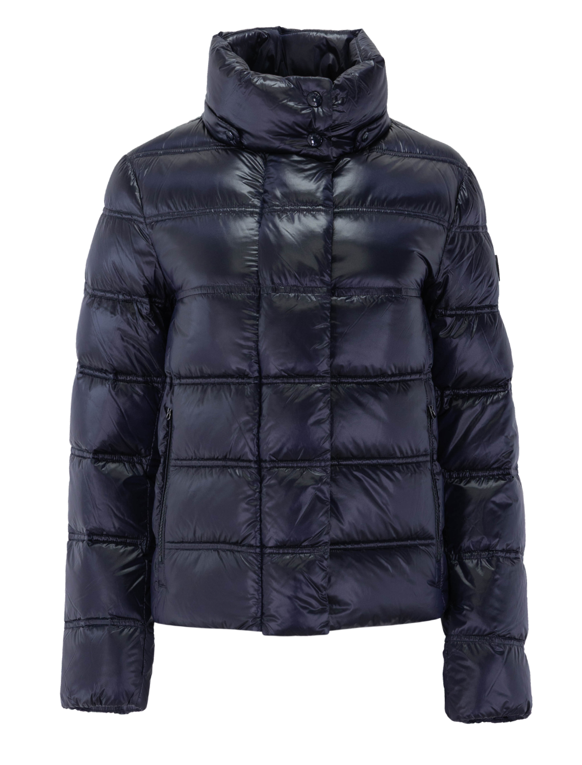 - padded stand-up collar with bogner snap buttons and decorative facing, sleeves with elasticated hem finish, with 'B' logo rubber patch on the left sleeve, concealed two-way zipper and concealed snap button placket for fastening, two side zipper pockets, logo pendants on the zippers, corded ribbon loop inside, flowing lining, hem finished with drawstring and stoppers
