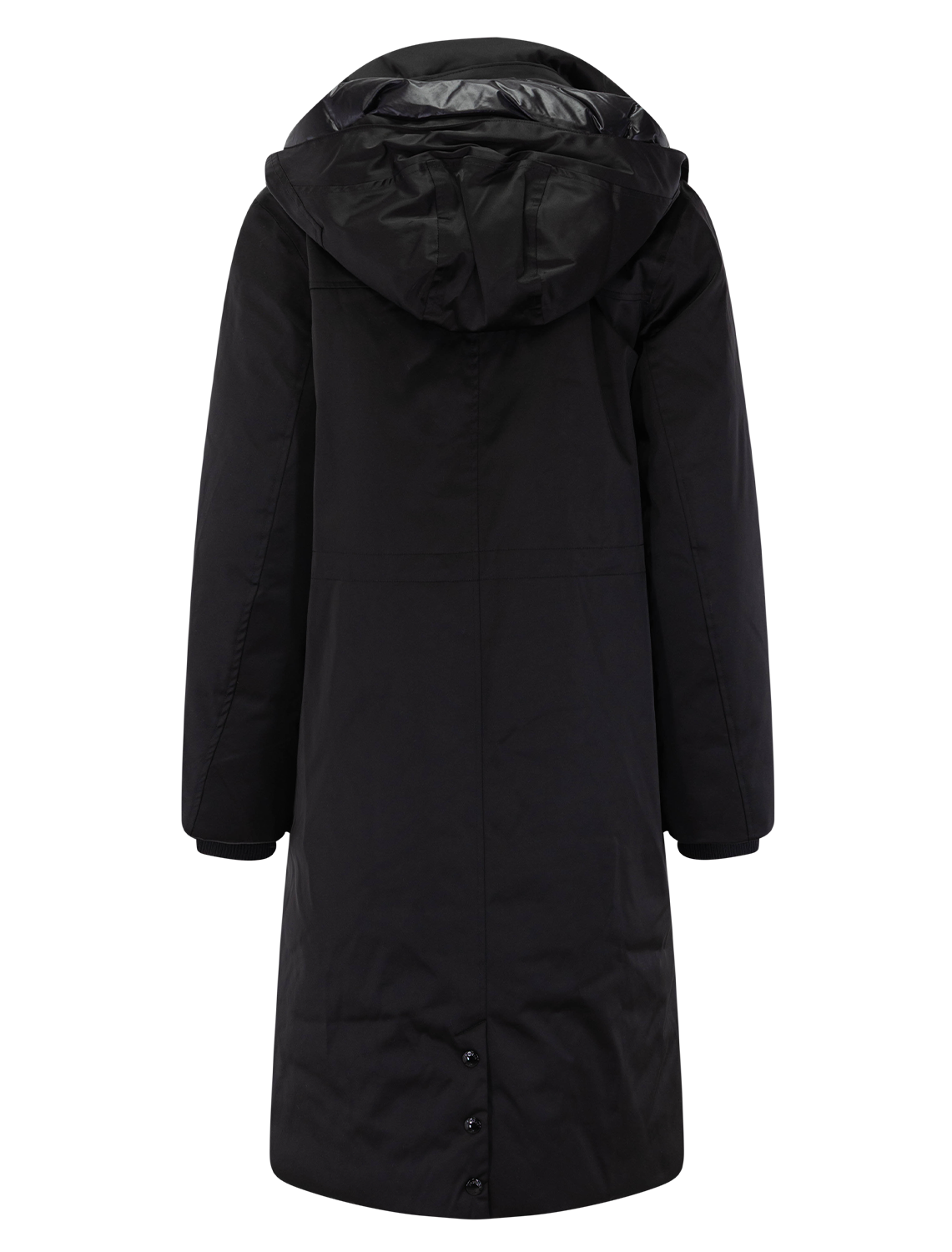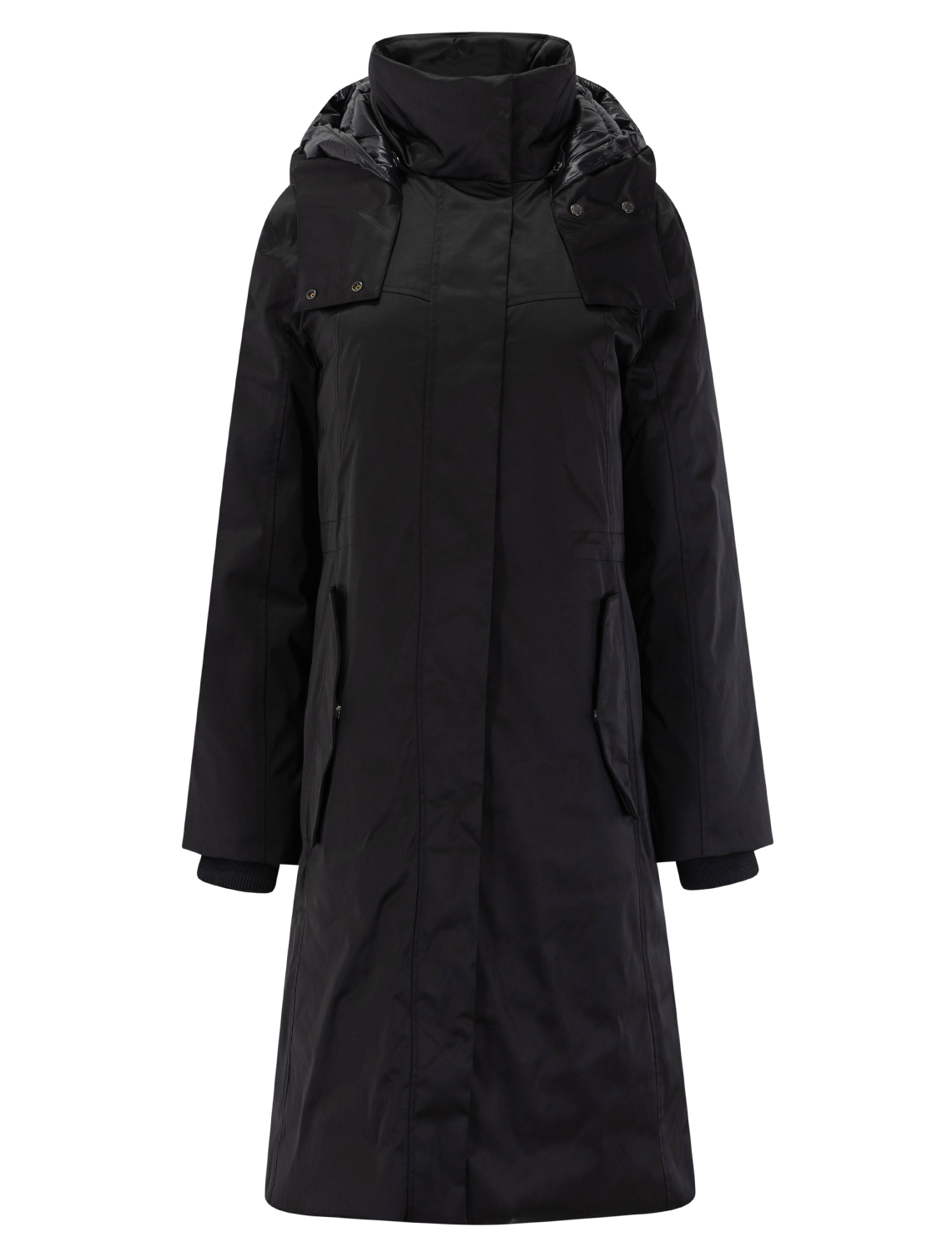 The Lynn down coat is characterized by satin fabric in two-way stretch and padding made from pure duck down. The detachable hood and side flap pockets accentuate the style, while the drawstring waist and ribbed cuffs round off this comfortable piece.