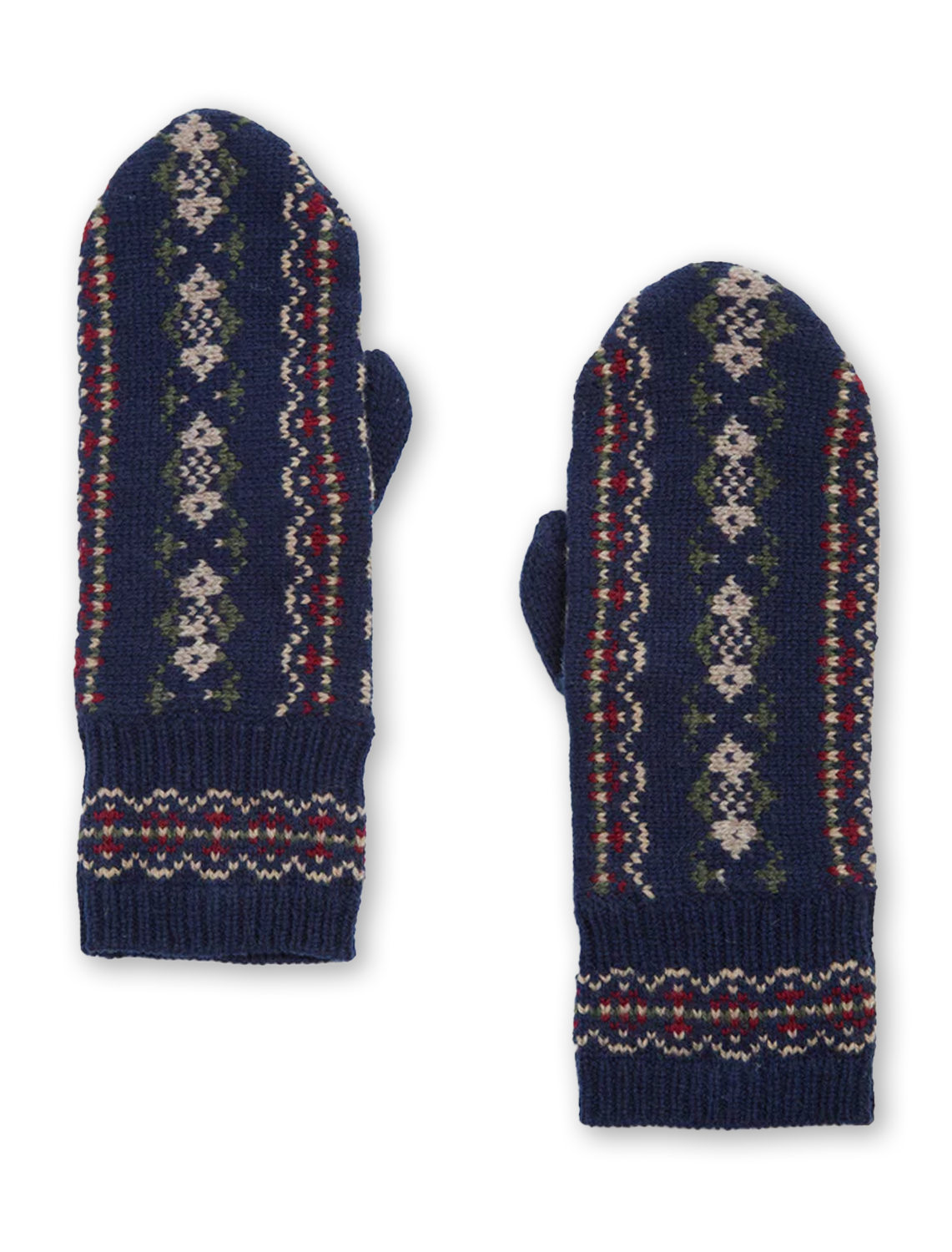 The Ciara mittens are crafted from jacquard knit, featuring a classic fair isle motif, making them the perfect cold weather accessory.