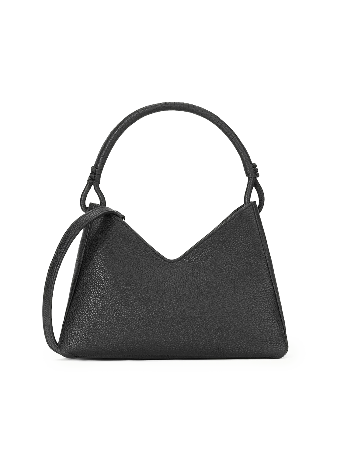 A minimal shoulder bag with removable crossbody strap, the Valerie features Staud's signature hand-wrapped and knotted handle detailing. This style is lined with a moire fabric and features a zip closure.