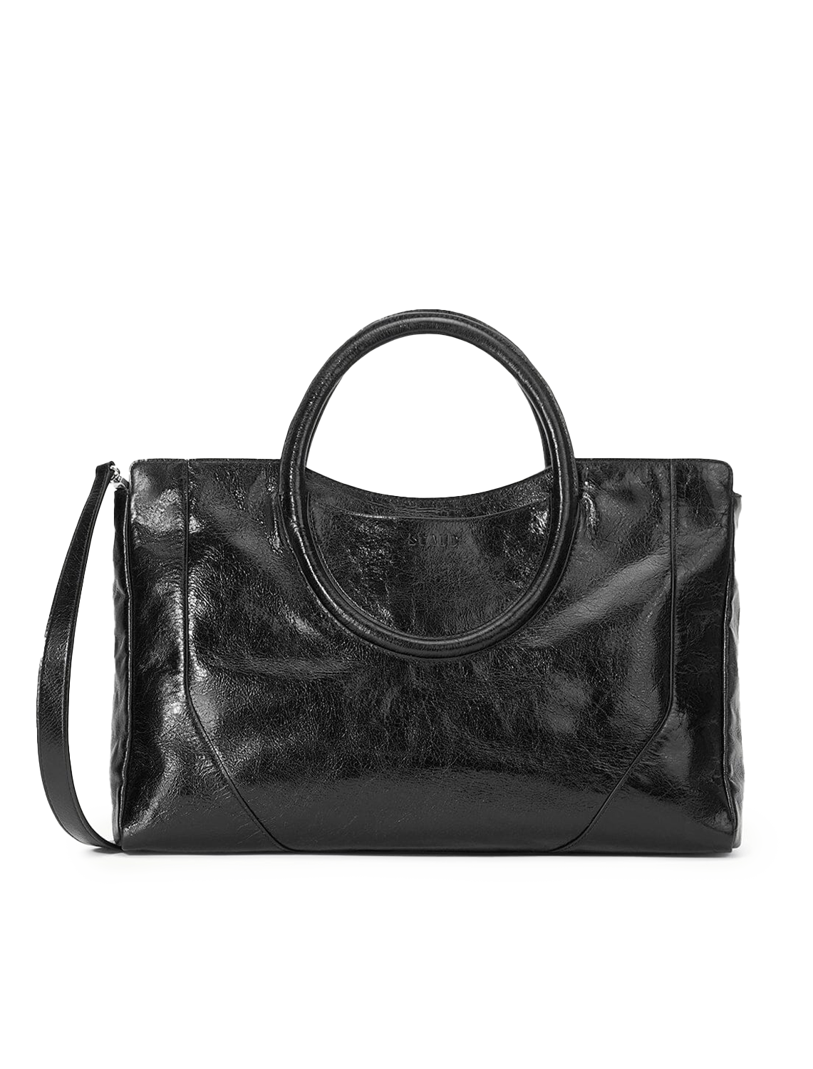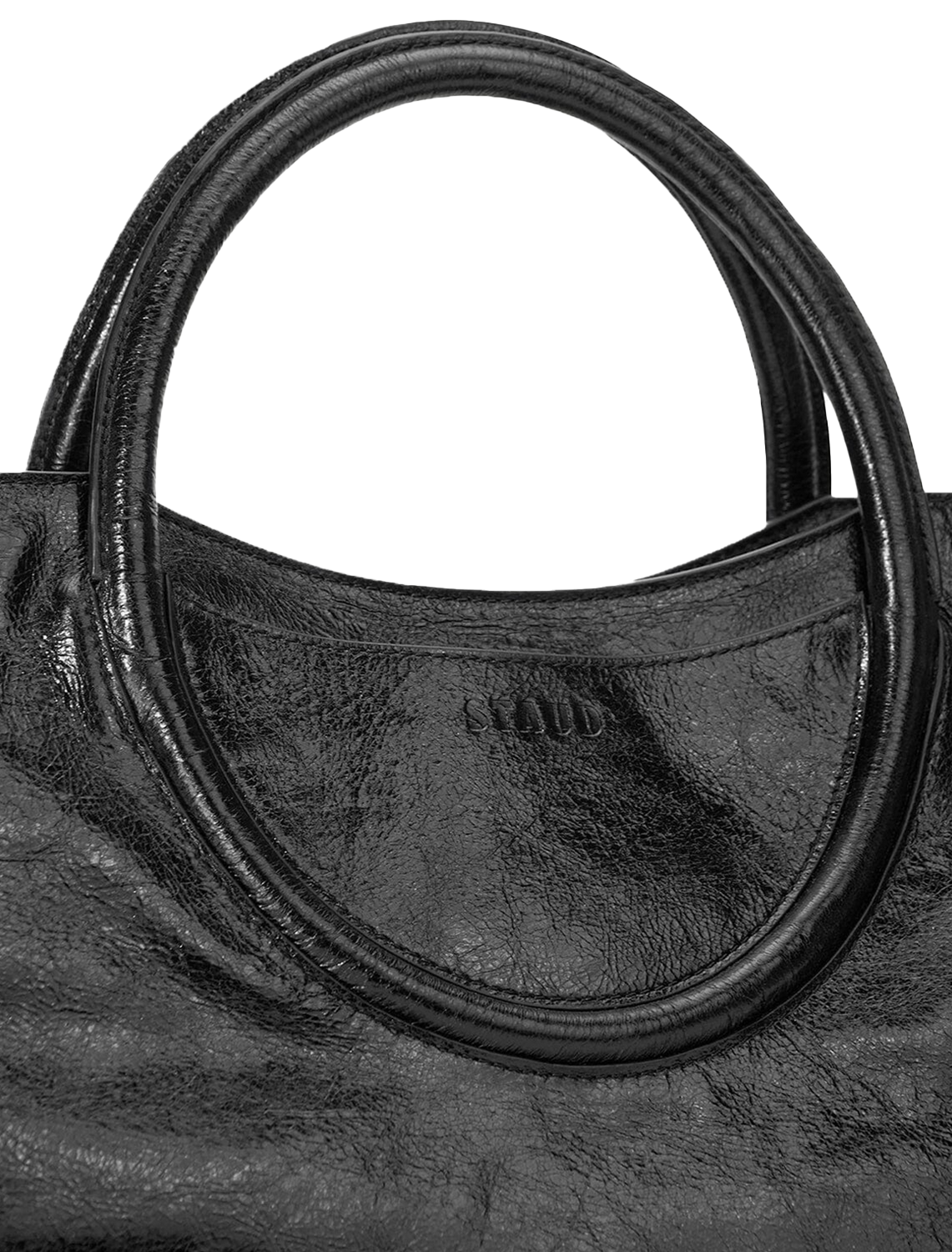 The Maude Satchel is the perfect everyday bag from Staud's Maude family. This style is a soft and slouchy satchel, featuring rounded handles and a removable wide shoulder strap. It has a front pocket that is perfect for a phone and has a zip closure. Made out of a slightly shiny crinkle leather.