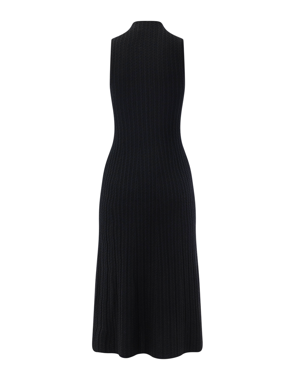 Cable stitches add touchable texture to a wool-enriched sweater-dress knit in a flared, sleeveless silhouette and topped with a polished funnel neckline.