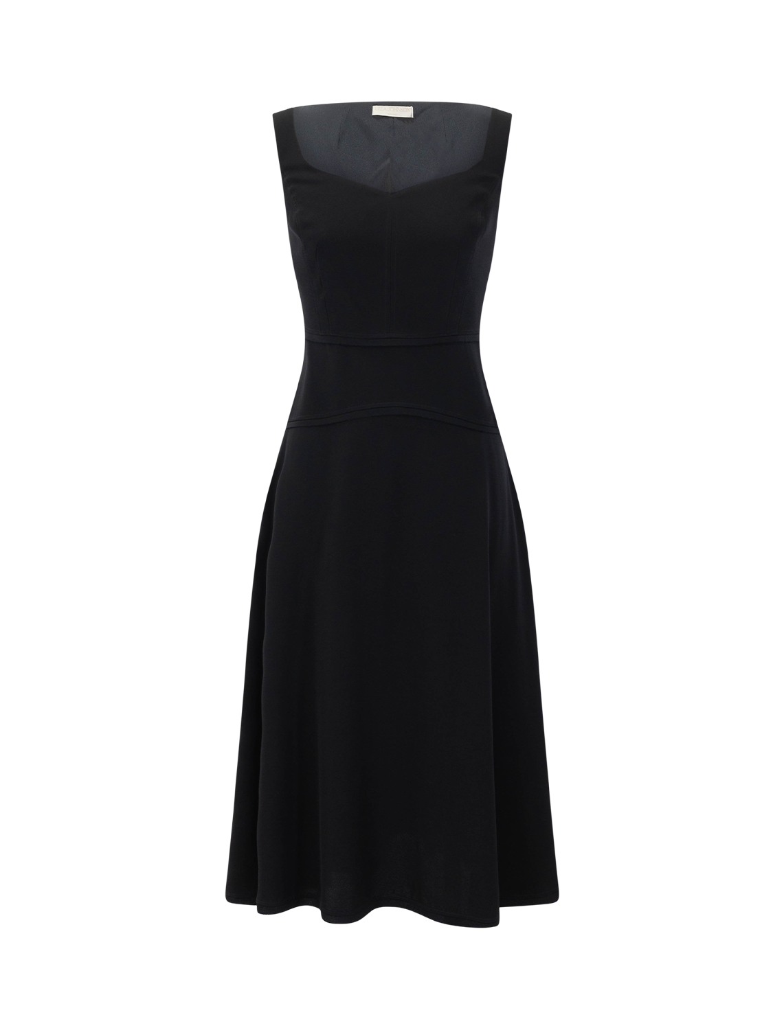 The Vivi Midi Dress from Ulla Johnson is crafted from satin-back crepe. This sleeveless midi dress features a sweetheart neckline, a lined bodice, tonal seam detailing, and a concealed side zipper. It is designed to be fitted at the bust and waist, and flares at the hem.