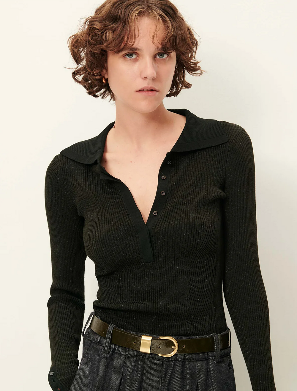 liberté egalité maternité black crewneck sweater with sand embroidery