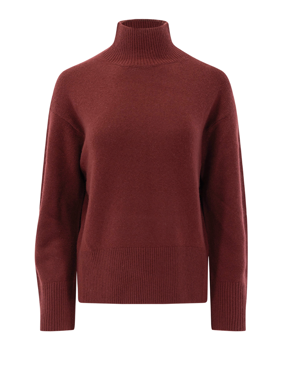 wool-cashmere side slit turtleneck sweater in bordeaux