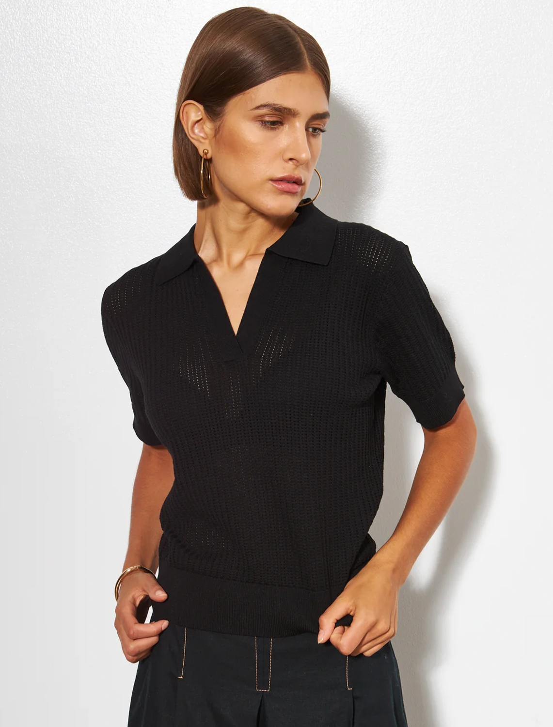 Line's Emery Knit Polo in Caviar.