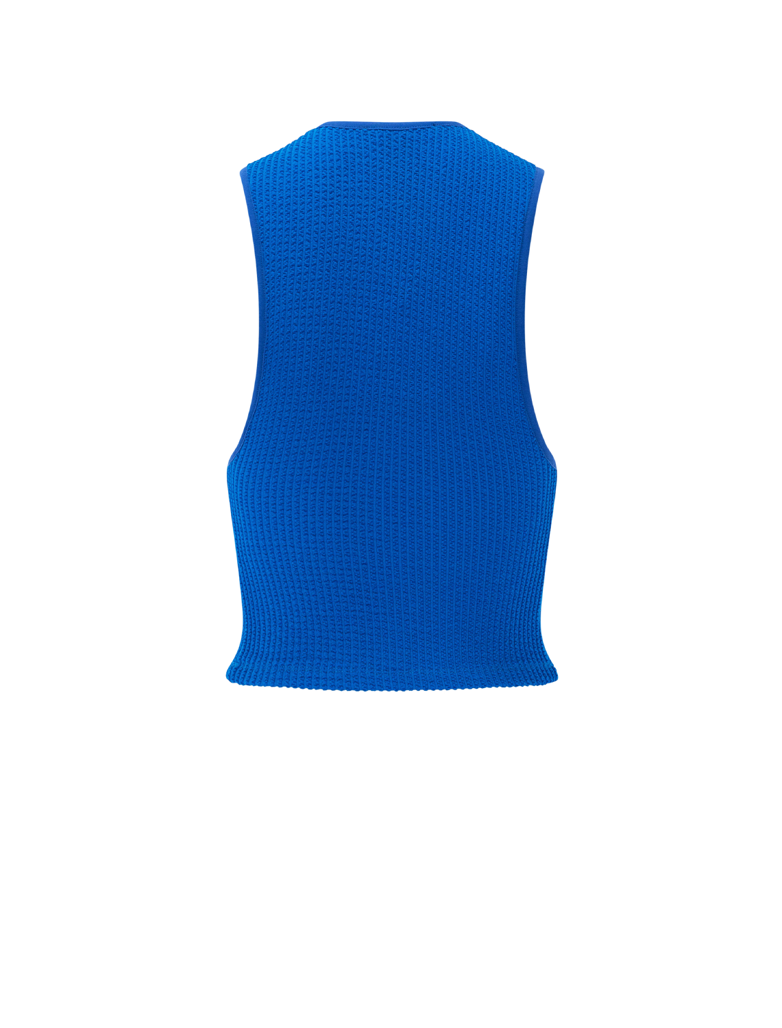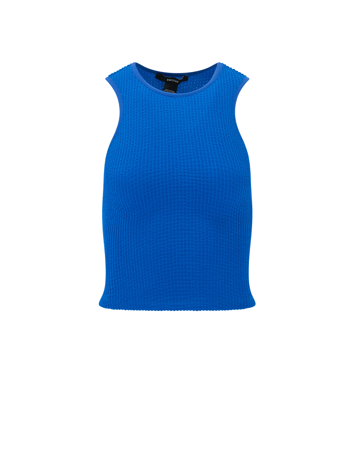 A fitted, stretch pullover knit top, this silhouette features a cropped body and racer-back shape. The ribbed stretch fabric has what Smythe refers to as "guts". The construction offers the perfect amount of compression and support. This tank is seasonless and travels well.