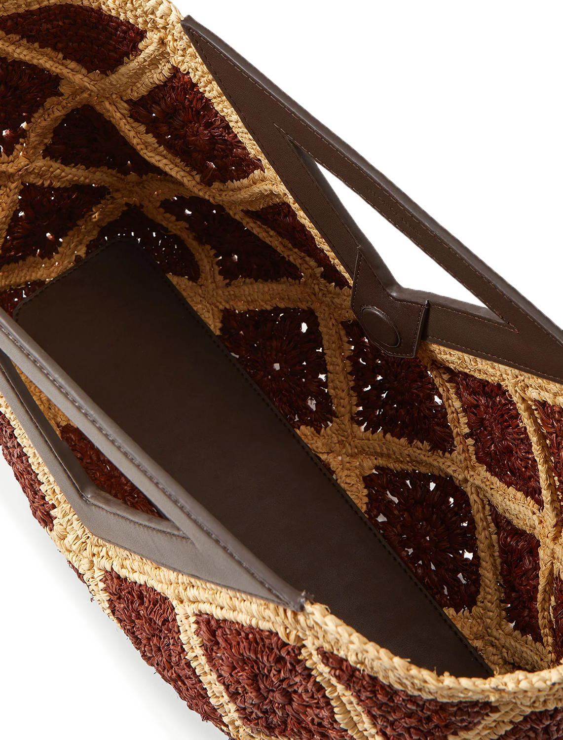 100% raffia | trim: 75% leather, 25% polyurethane laminate