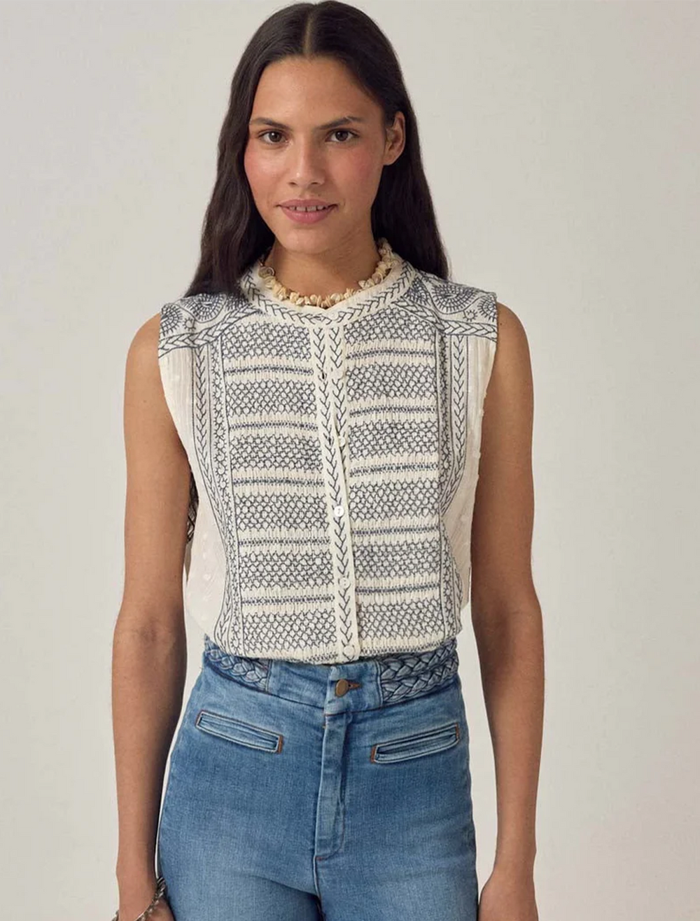 lilia embroidered top in ecru