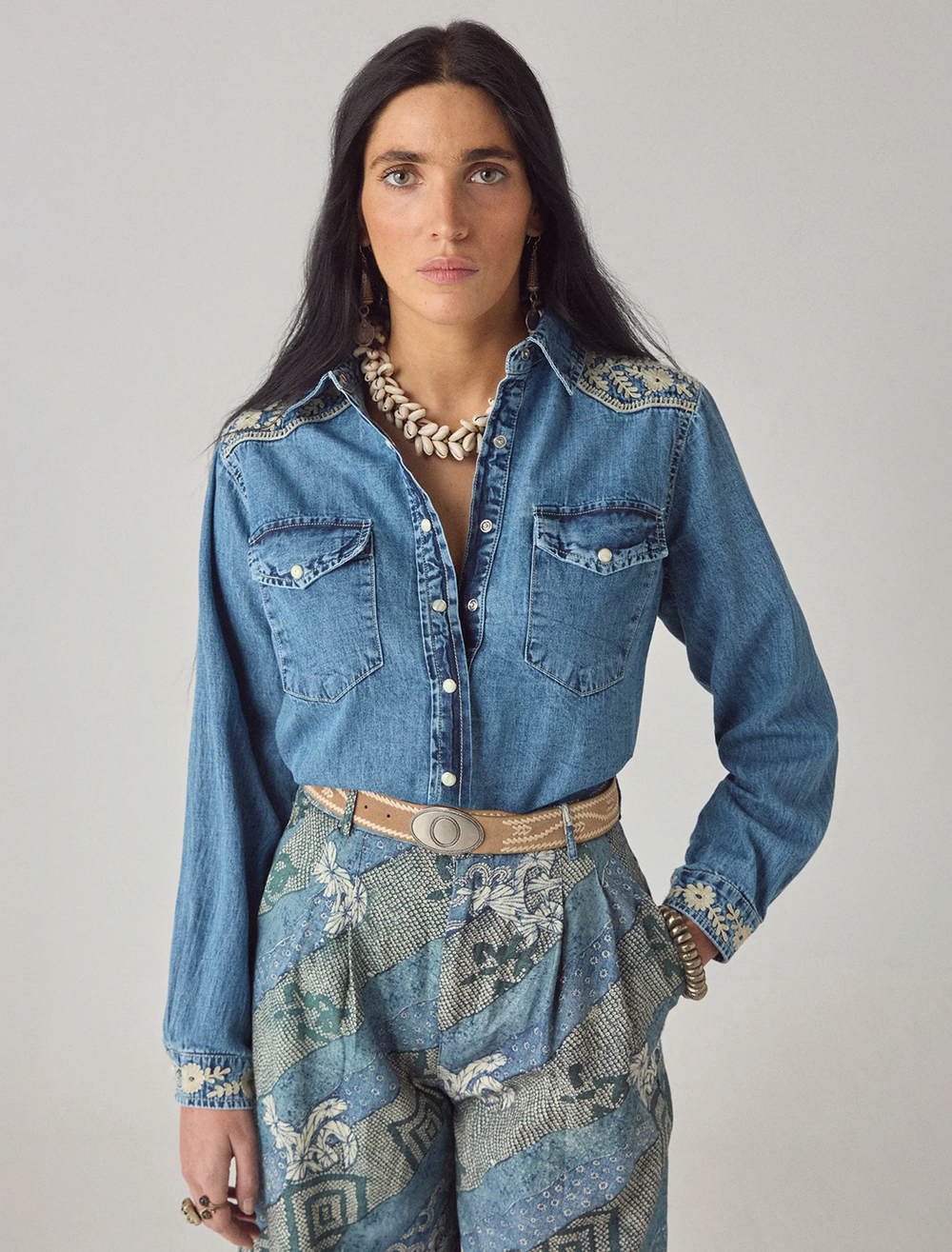 arizona embroidered top in blue haze