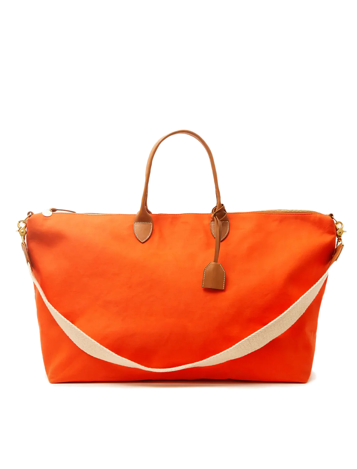 A CV classic - the ultimate luxe travel bag. Fits your getaway essentials & then some. Two ways to carry - top handle & detachable crossbody strap. Made of 100% cotton plain weave canvas with vegetable-tanned leather key ring holder.