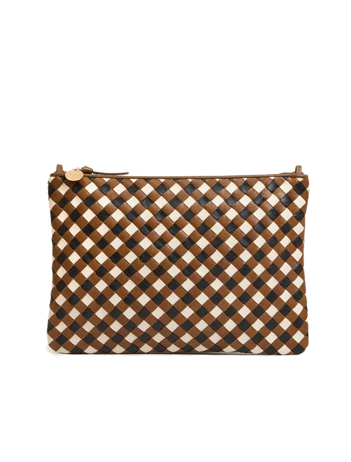 Clare V.'s Flat Clutch with Tabs holds a smartphone, small wallet, and keys with room to spare. Convert her into a shoulder or crossbody with any of Clare V.'s straps.