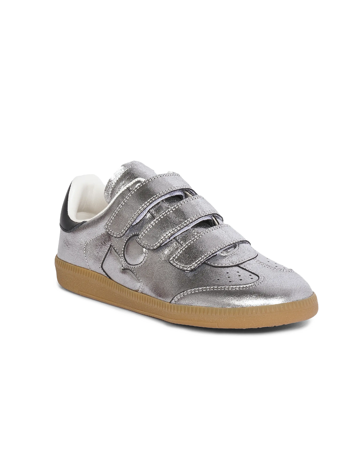 These Festive Beth sneakers from Isabel Marant are crafted of metallic leather and feature a round toe, hook-and-loop closure, and a rubber sole.