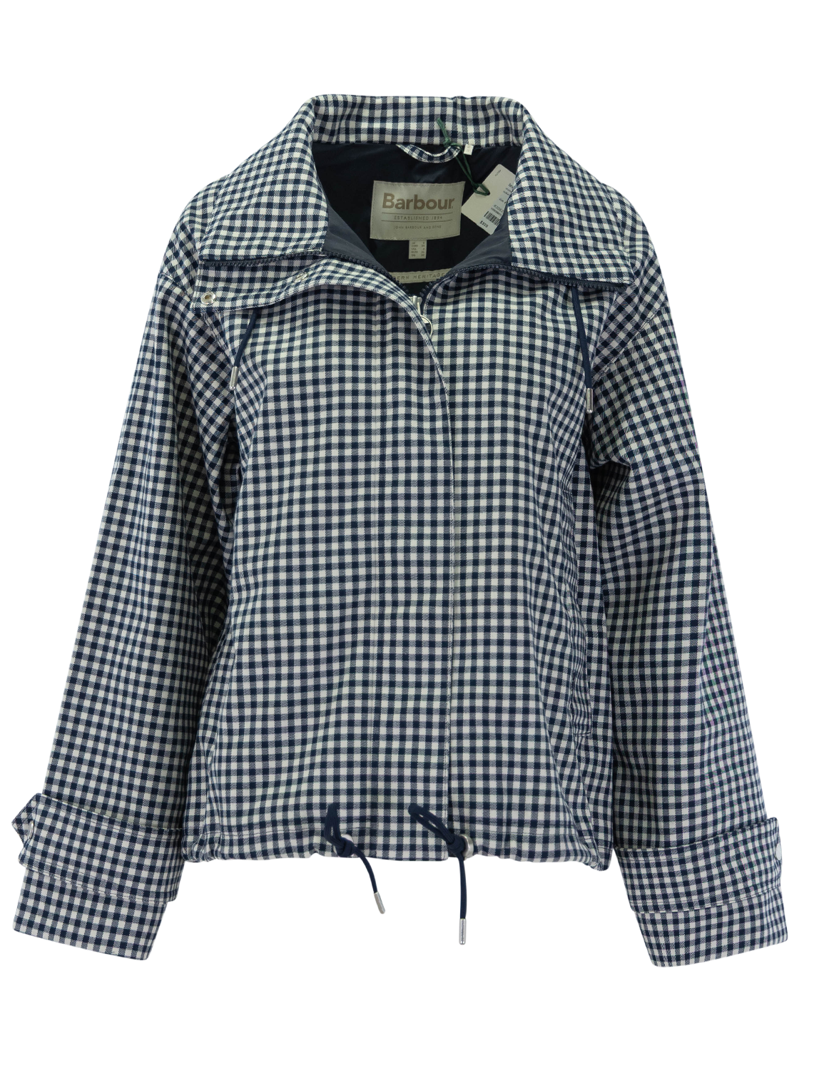 The Barbour Bronwyn Gingham Showerproof Jacket is a stylish, short-layered essential for unpredictable weather. Crafted with an oversized funnel neck and adjustable drawcords at the neck and hem, it offers a customizable fit and extra protection. A zip centre-front fastening sits behind a studded placket, complemented by practical front welt pockets. Lightweight yet durable, this jacket combines contemporary design with Barbour’s signature heritage detailing for versatile, all-season wear.