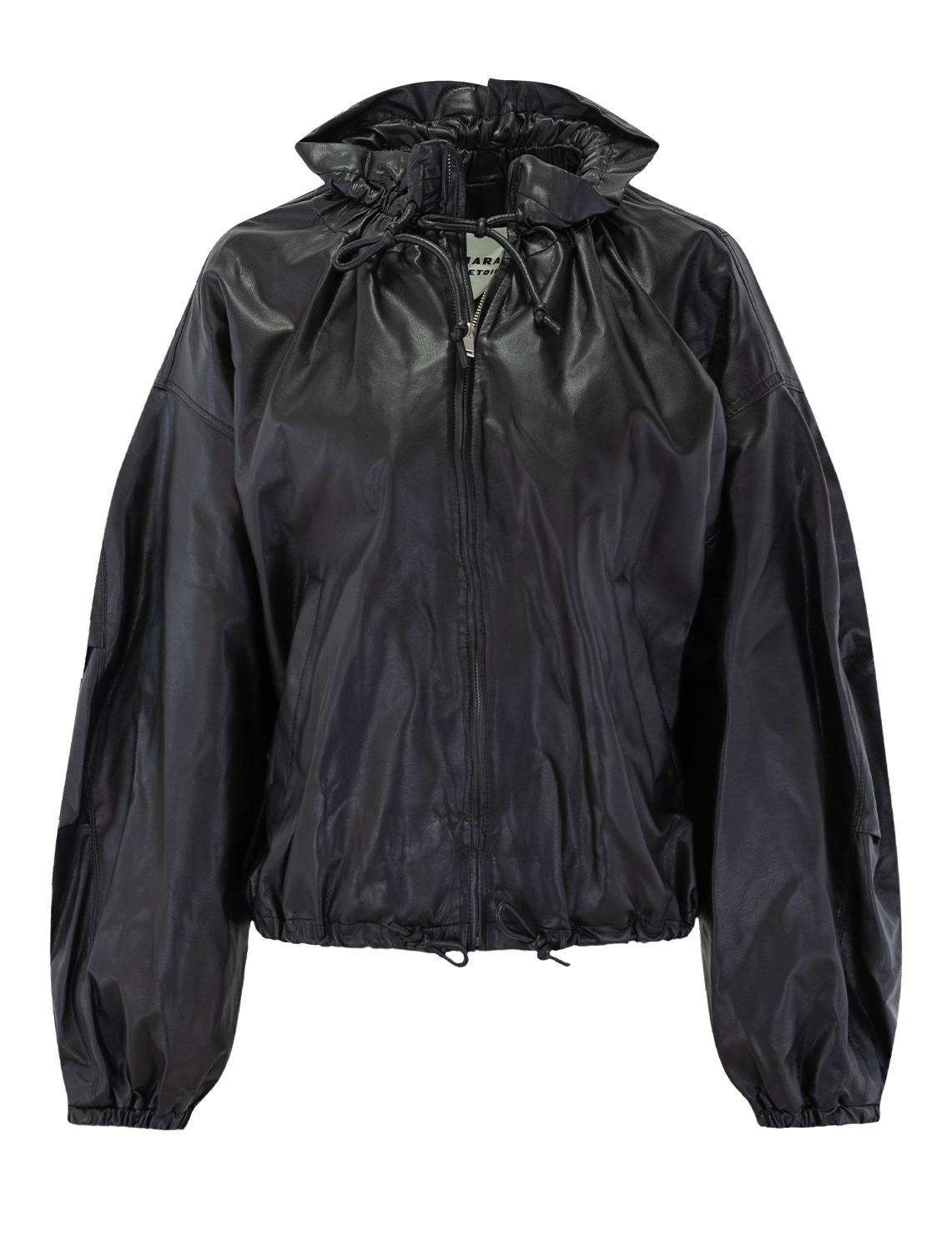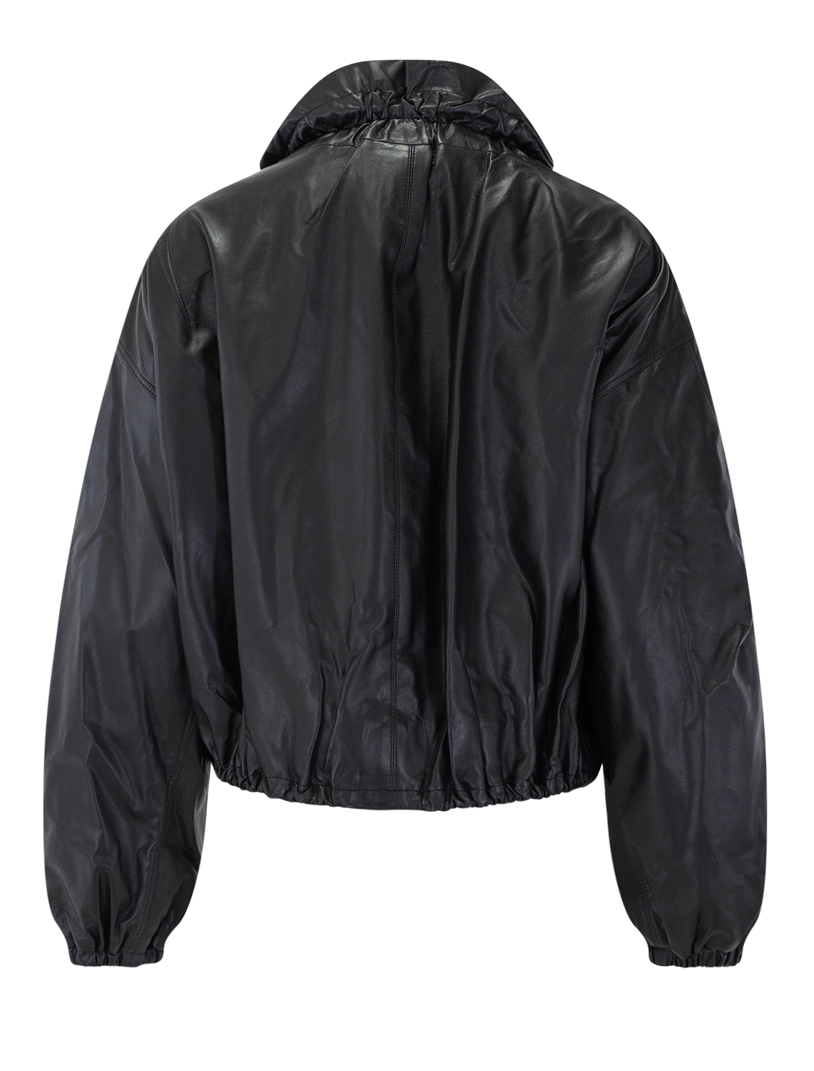Short supple faux leather jacket.