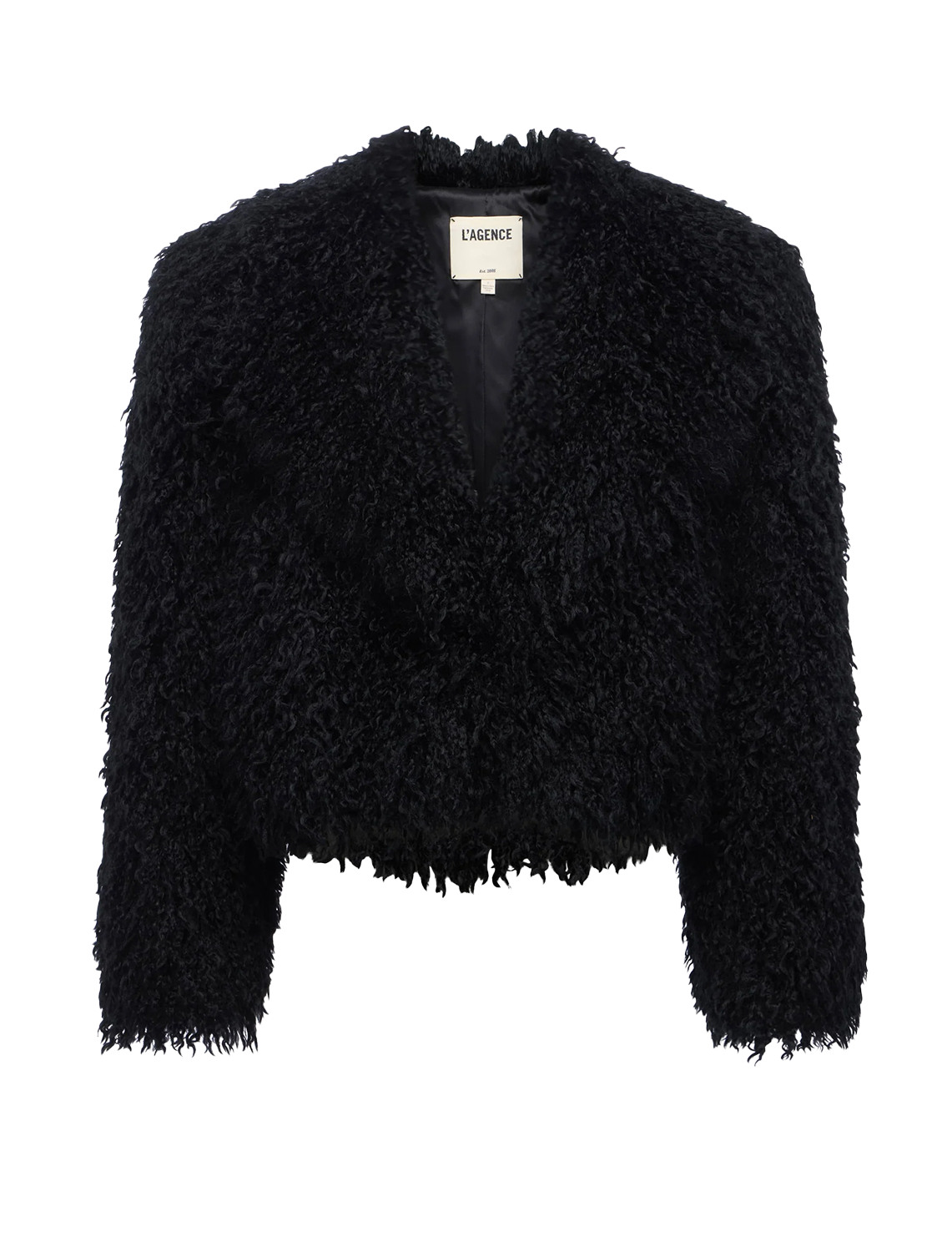 Equal parts cozy and glam, the Aura is a plush faux fur jacket with a soft, curly texture and relaxed fit. The perfect statement layer.