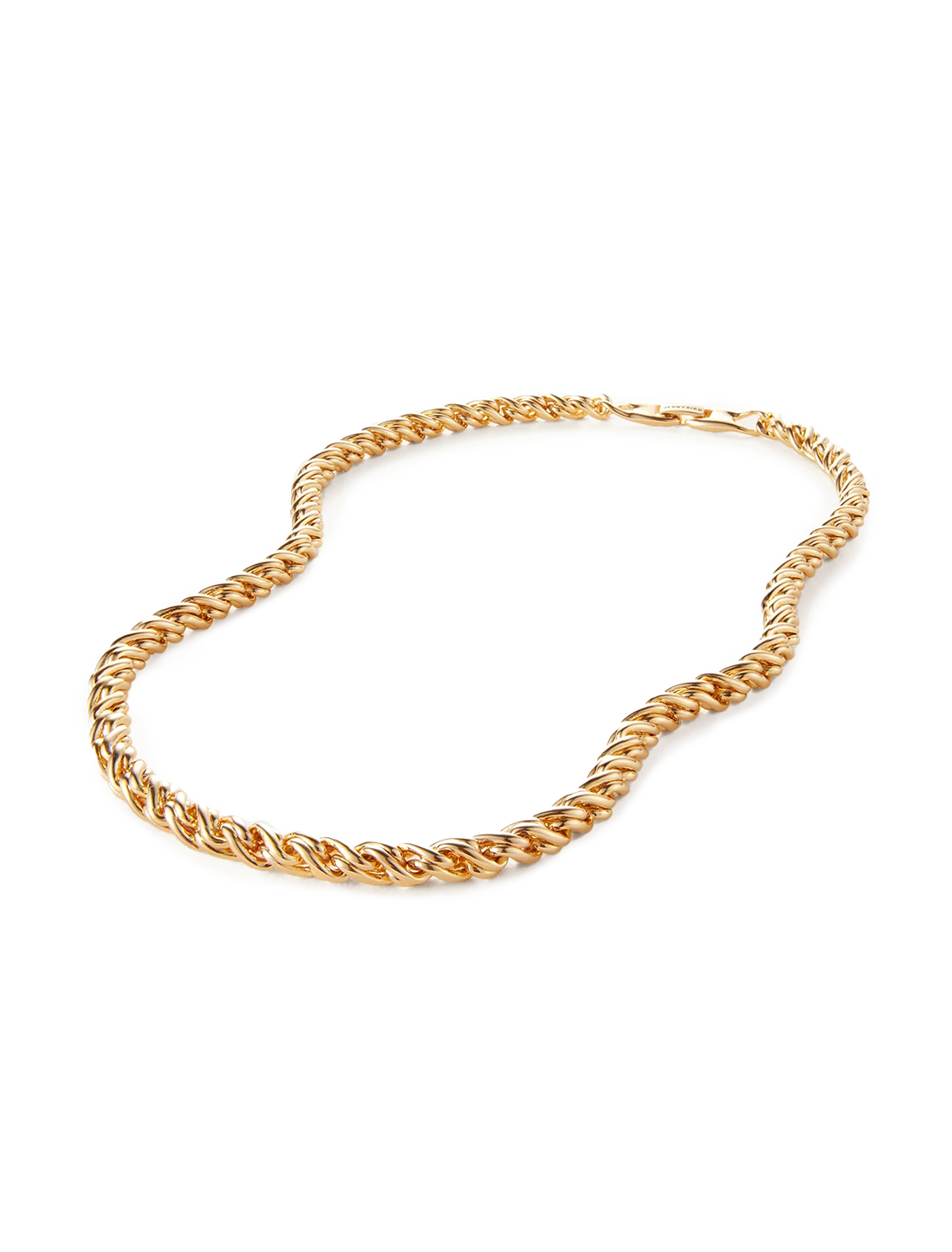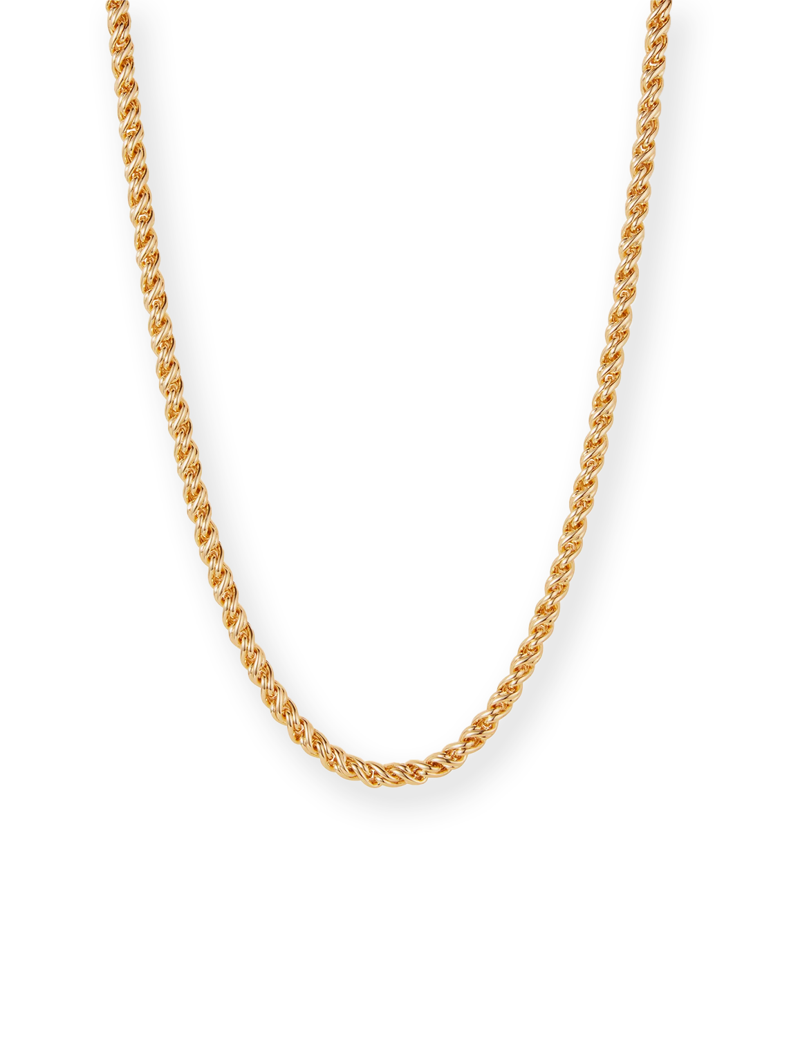 At a glance, this braided chain looks like curls of gold. It's the perfect anchor for your neck stack—or, wear it solo for a "new nonna" moment. Finished in high-polish gold.
