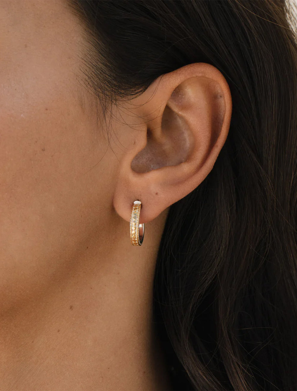 Every detail of Anna Beck's hinge hoops are handcrafted by the brand's Balinese artisans, featuring armadillo and wiring details, and 18k gold dotted discs. These hoops are stunning on their own or in a stack.