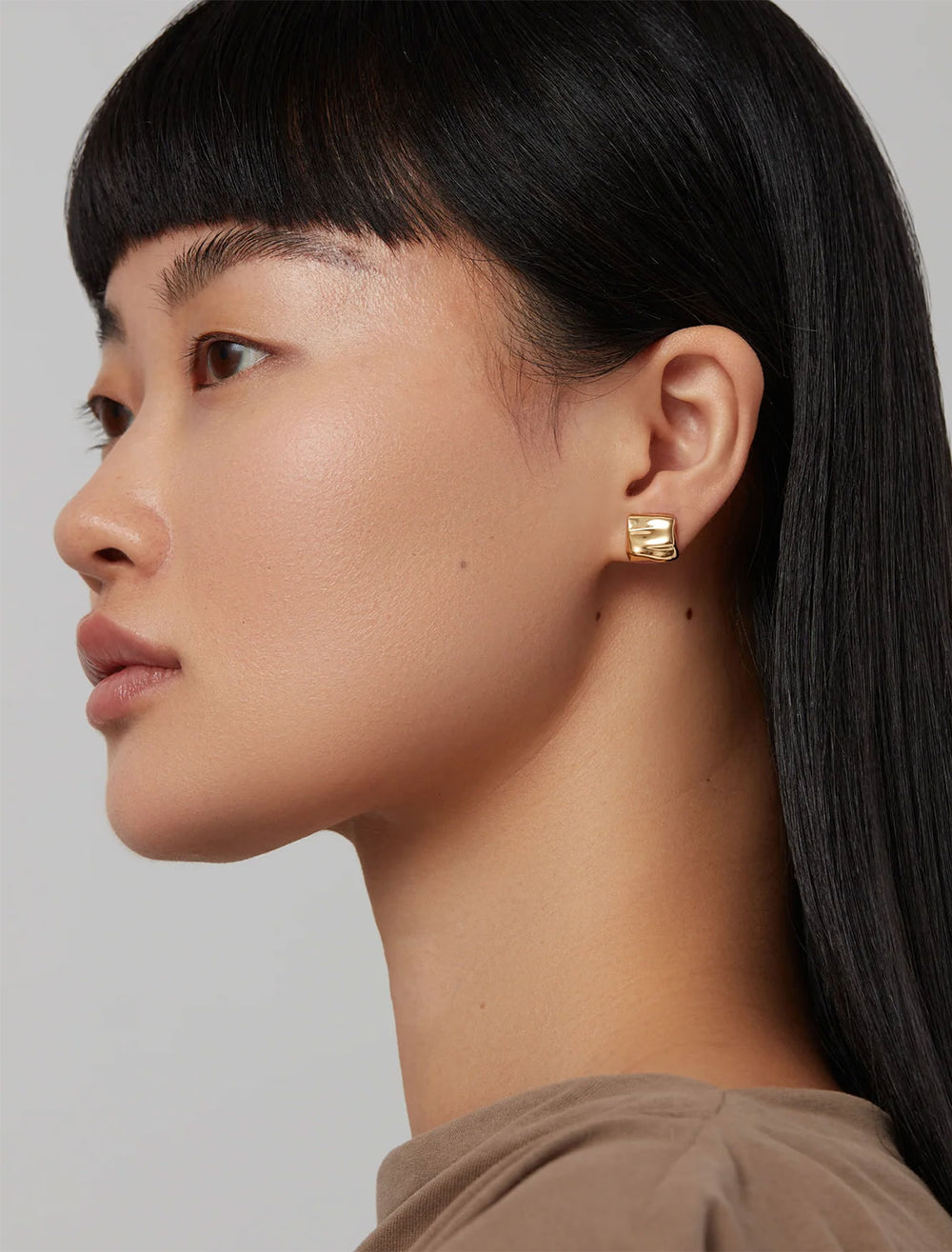 These tiny gold stud earrings mirror a sand dune shaped by natural winds. Perfect for finishing an ear stack. Finished in high-polish 14k gold.