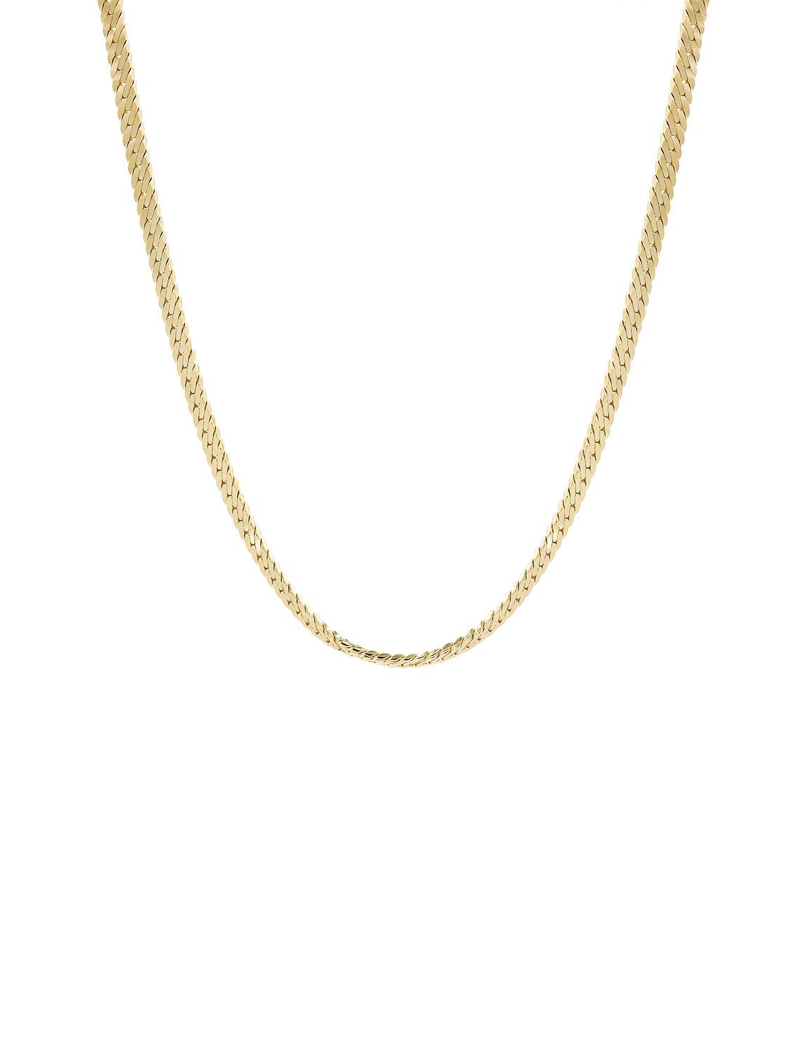 A timeless 14k gold plated herribone chain necklace that can easily be paired with your favorite keepsake jewelry.