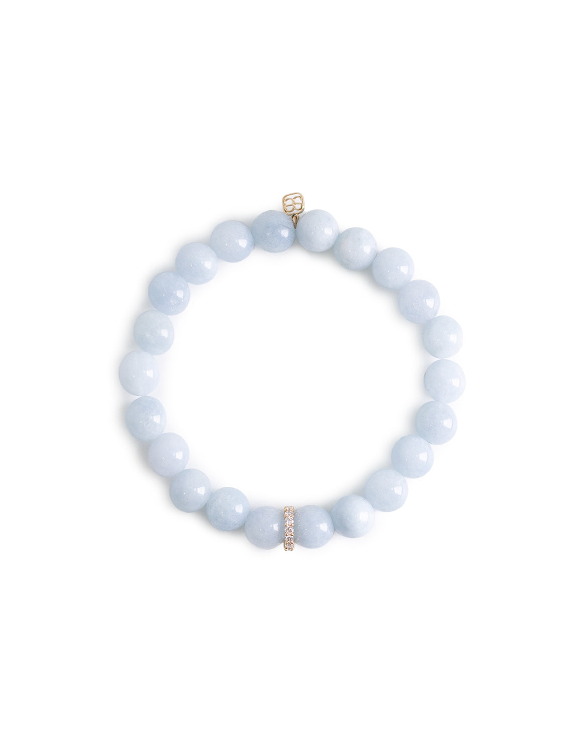 This elegant 14k yellow gold and diamond cocktail rondelle, delicately set on a 8mm aquamarine bead bracelet, combines sophistication and timeless beauty. The gorgeous aquamarine beads symbolize serenity, calmness, and clarity, while the radiant diamond rondelle adds a touch of luxury and brilliance. Each bracelet is carefully strung on a stretch cord for comfort and flexibility, featuring the signature 14k gold SE logo charm, representing both quality and craftsmanship.