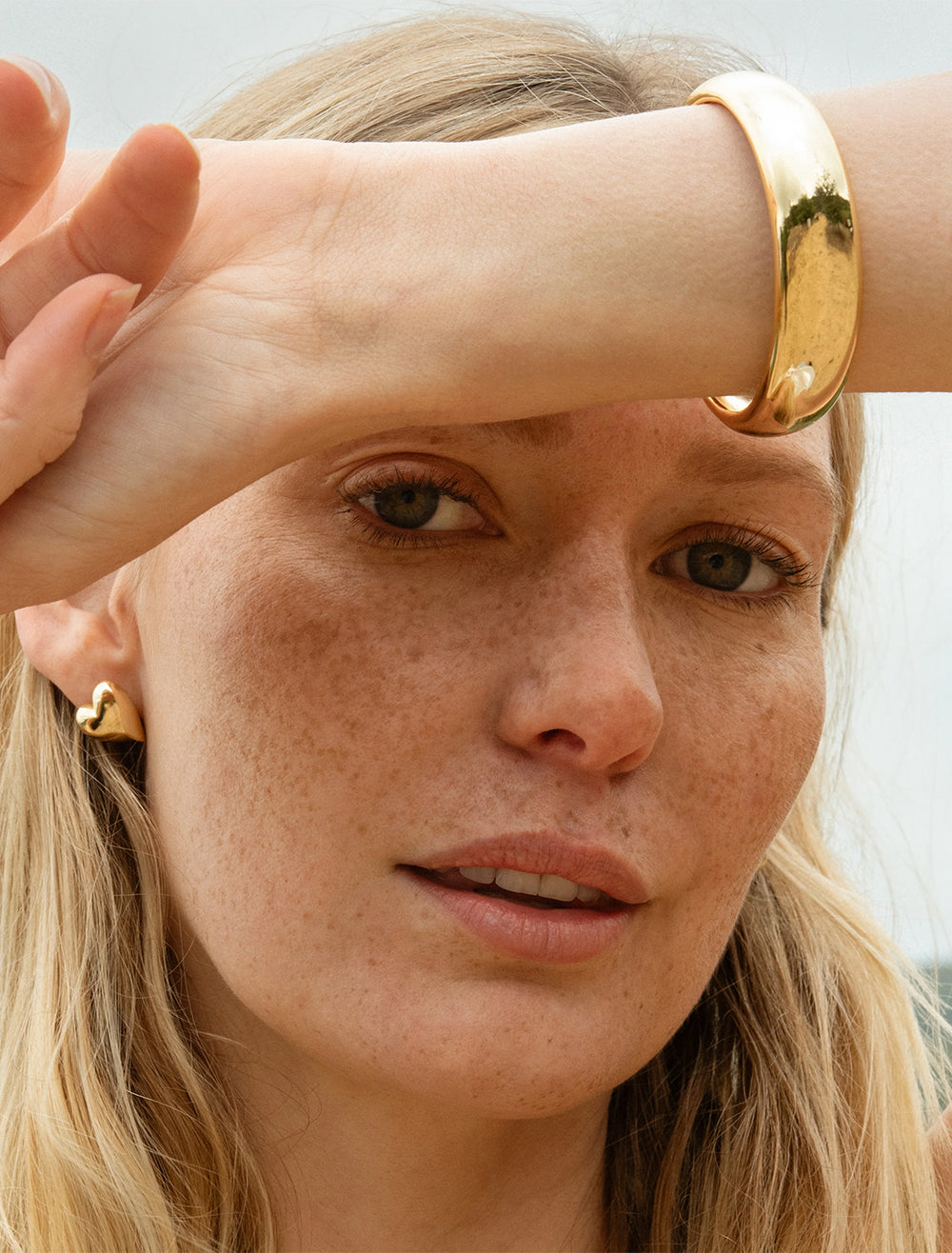 The perfect cuff. Just the right size to stack and layer with all Thatch's favorite slim and chunky cuffs. Made slightly flexible — gently squeeze it to fit comfortably and add a bit of luxe shine to every wrist.