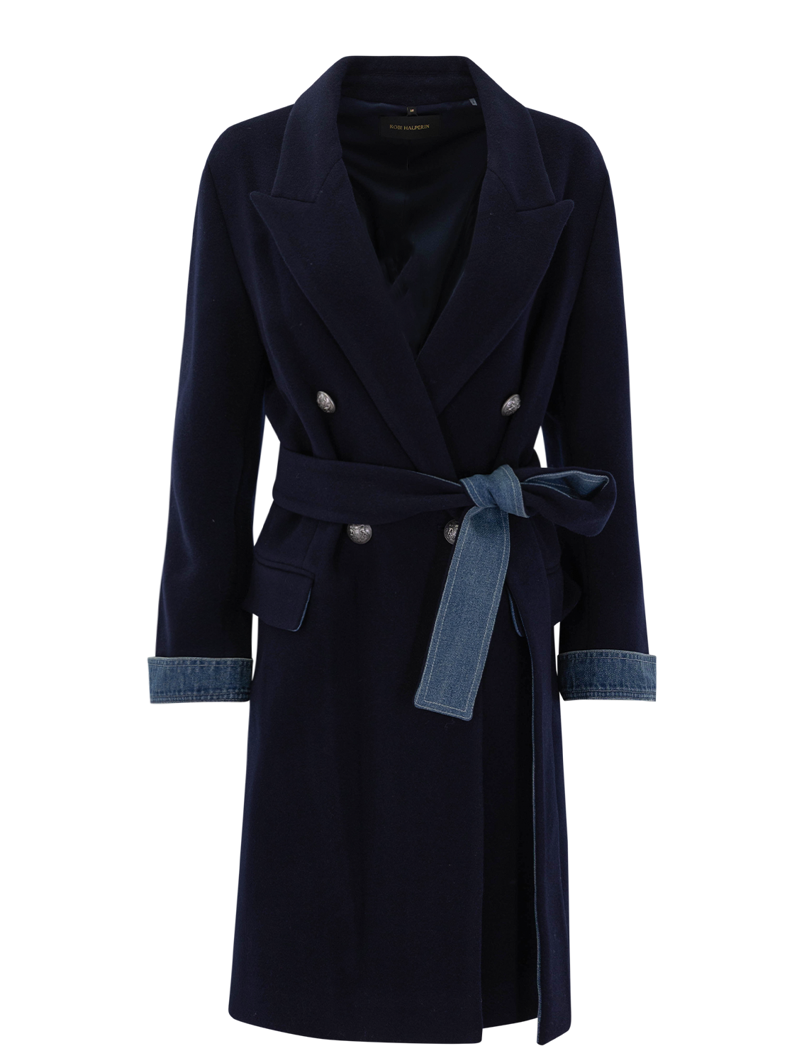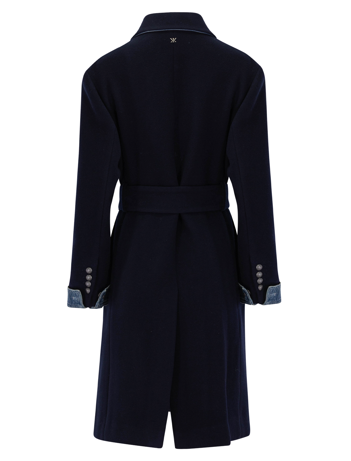 Crafted of double-faced wool, this Otto coat from Kobi Halperin features contrast denim cuffs for a modern twist. Ornate buttons lend elevated detail to this double-breasted silhouette.