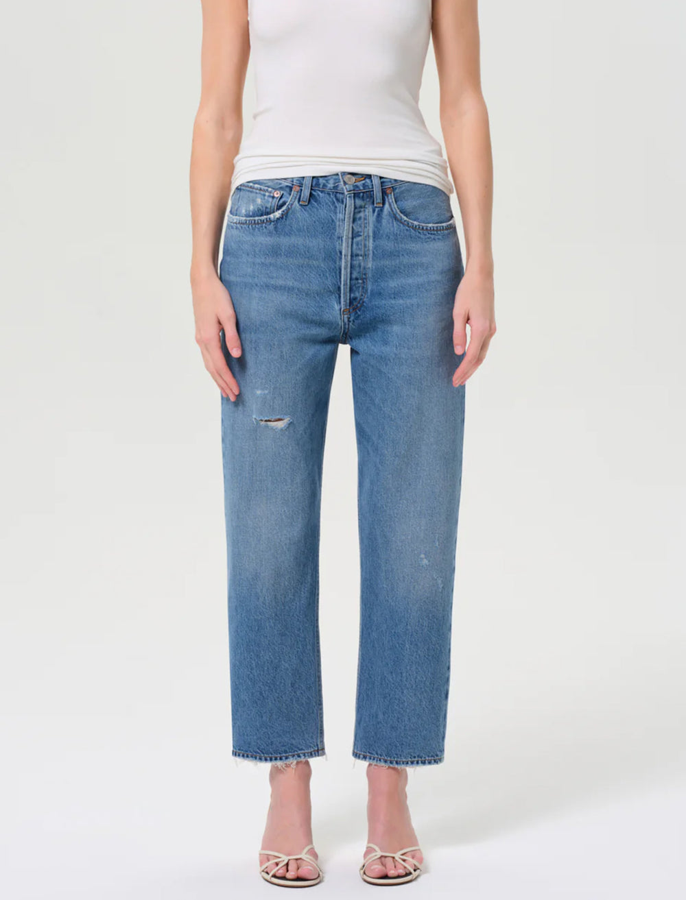 Cue the nostalgia. This 90's-inspired fit, crafted from bright vintage indigo denim and regenerative cotton, is part of the AGOLDE Weightless collection—the brand's lightest denim yet, designed for ultimate comfort in warmer weather. With a relaxed mid-rise, eased fit through the hips, and loose, straight leg, these jeans offer a timeless silhouette. Pair with an airy top and sandals for an effortless, relaxed look.